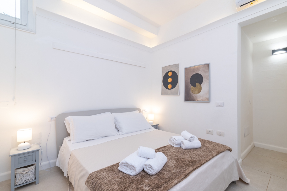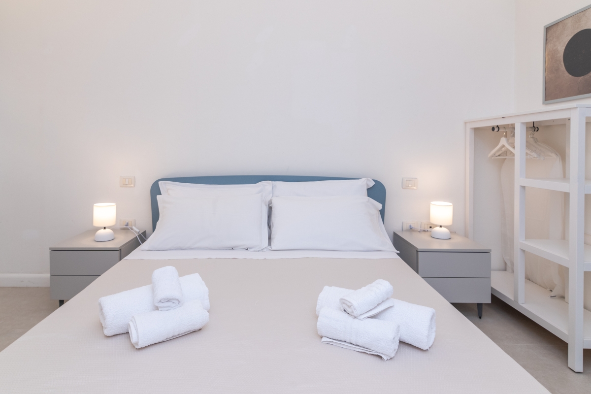 The apartment has a terrace with sea views so that guests can enjoy the glorious Sardinian climate at any time of year. Guests can access the open-plan living area, via a glass door which leads directly off the terrace. The stylish inside space includes a modern fitted kitchen which is equipped with an induction hob, oven, microwave, fridge/freezer and Nespresso machine. The kitchen also has a smart dining table and a separate breakfast bar.