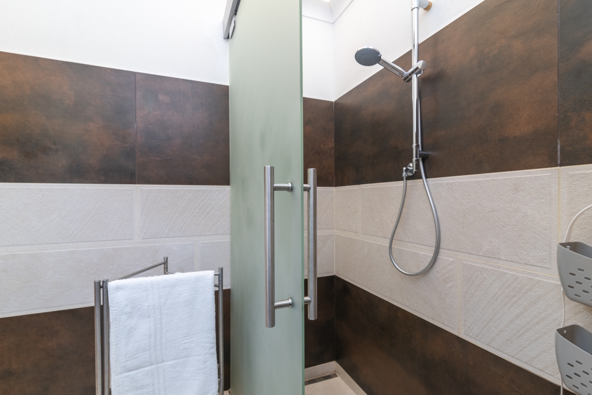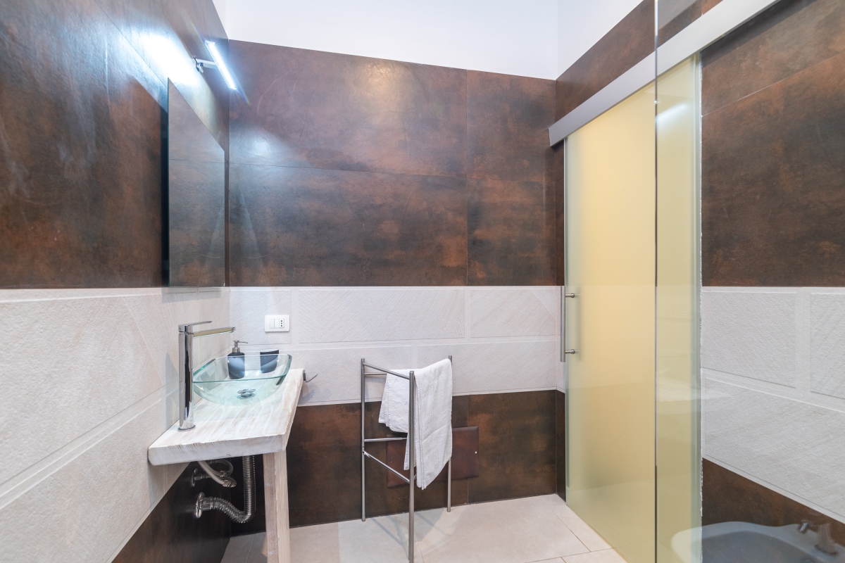 Bathroom 1: The en suite bathroom is furnished with a glass shower, bidet, basin and WC.