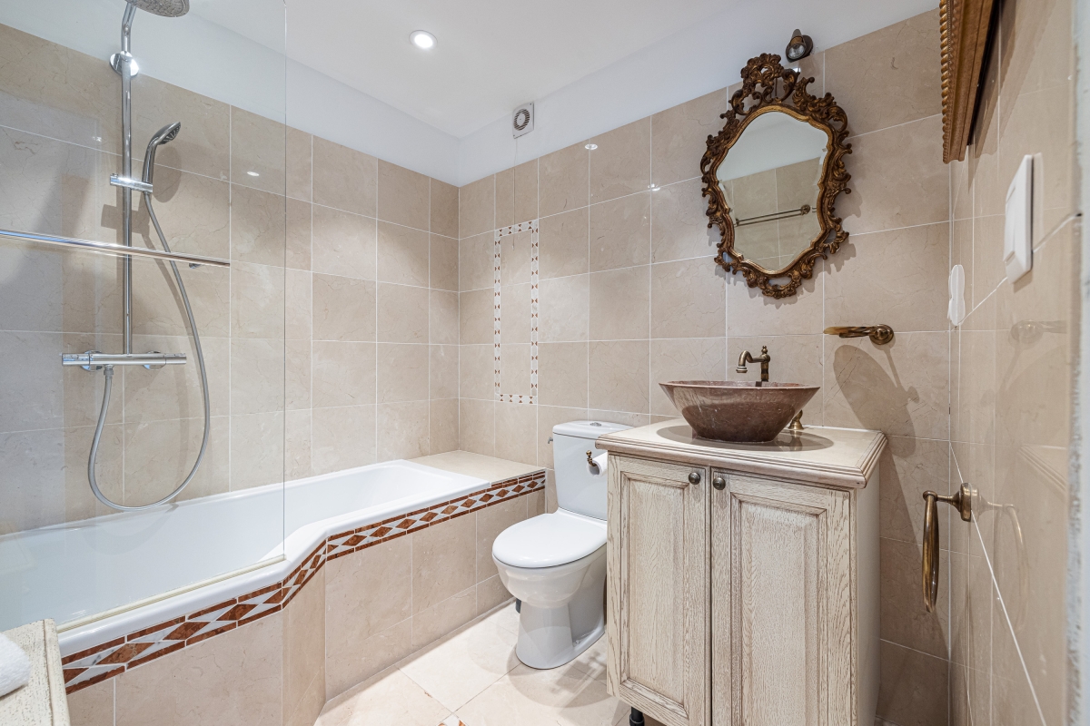 Bathroom 1: Ensuite to bedroom 1, this stylish bathroom has a bath with shower and WC.