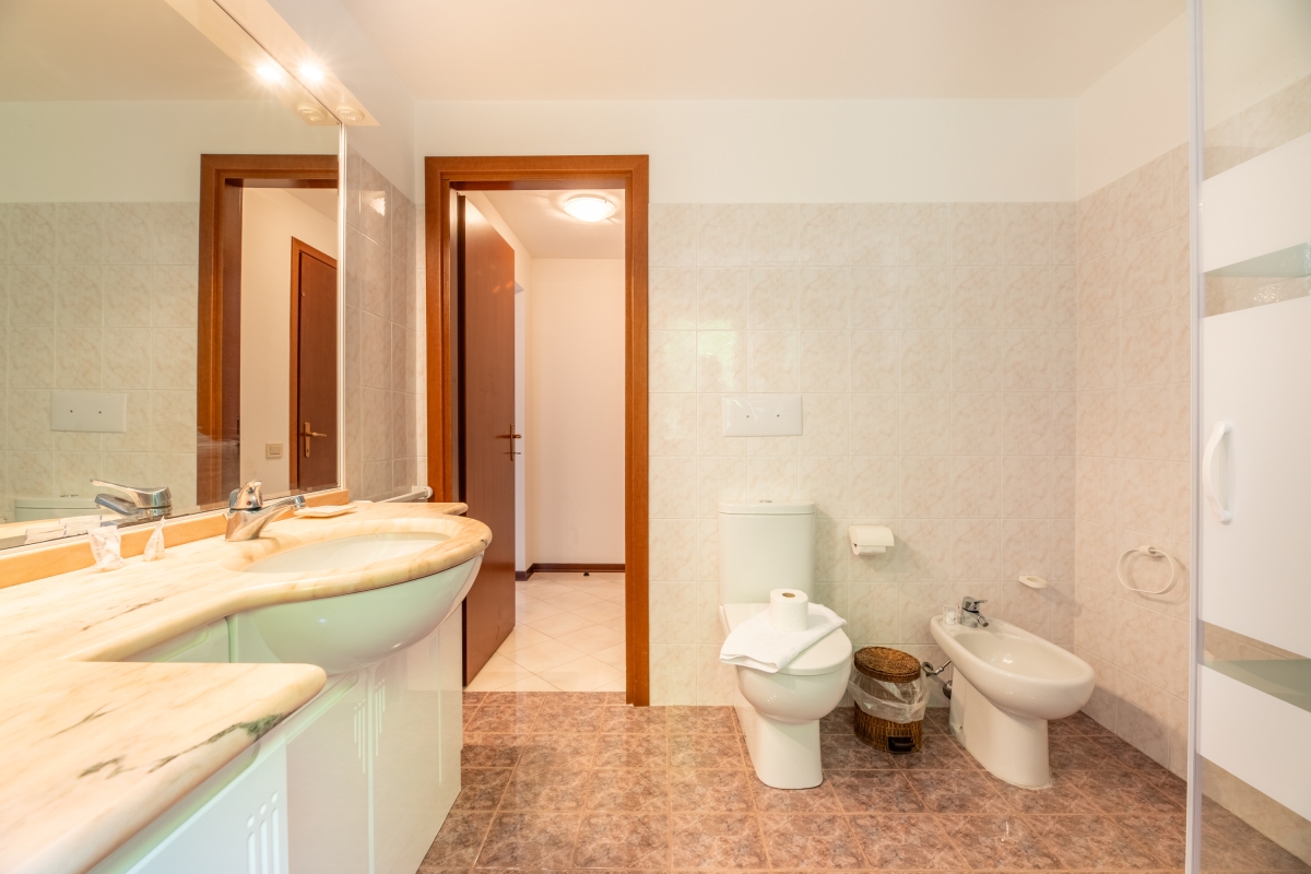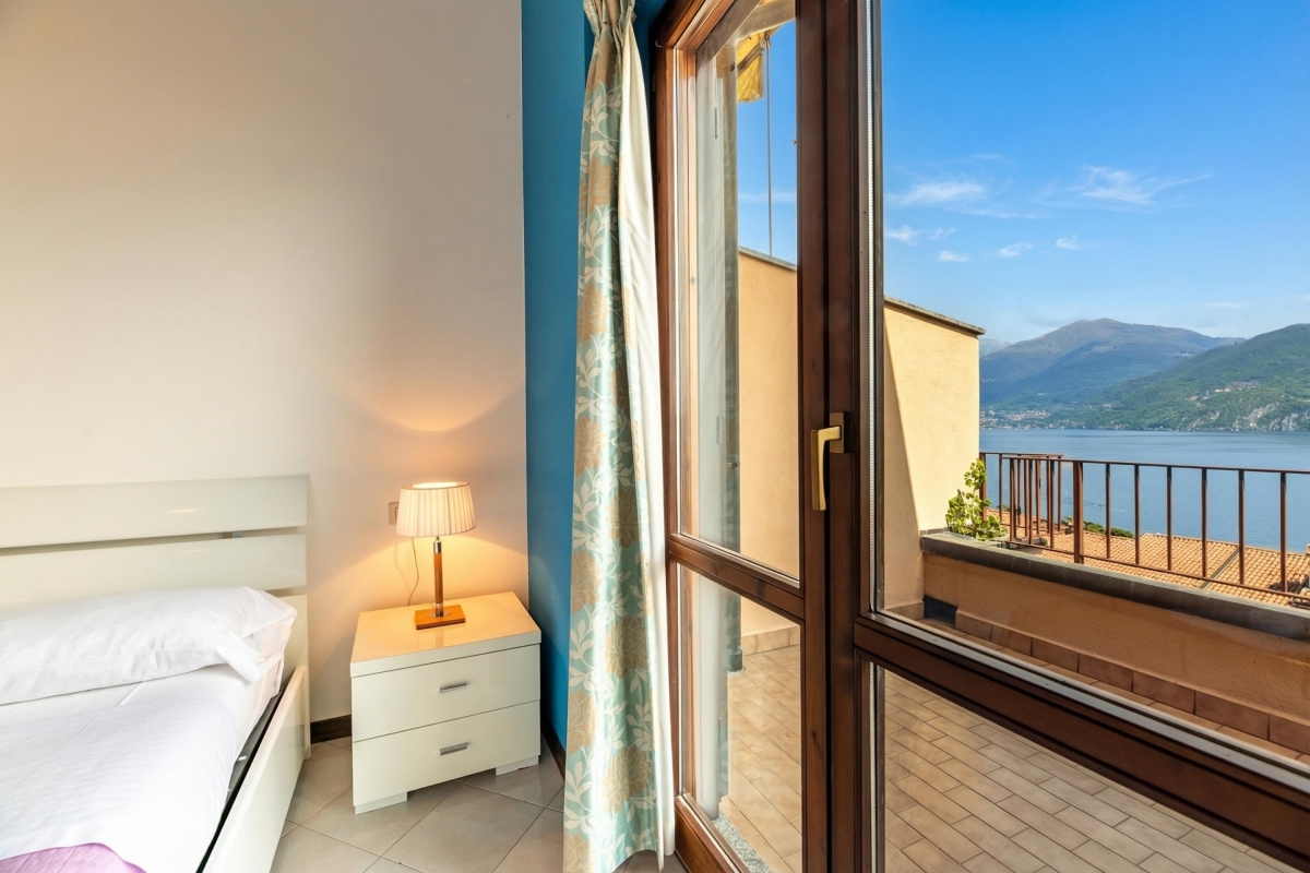 Inside the apartment the sleeping accommodation is perfectly suited for groups of 4-6 with a spacious lake view master double bedroom with balcony access, a second bedroom furnished with two single beds and Juliette balcony and from the living area, ten open tread stairs lead to a stylish mansard floor, which offers a second double bed and a wall mounted flat screen TV.