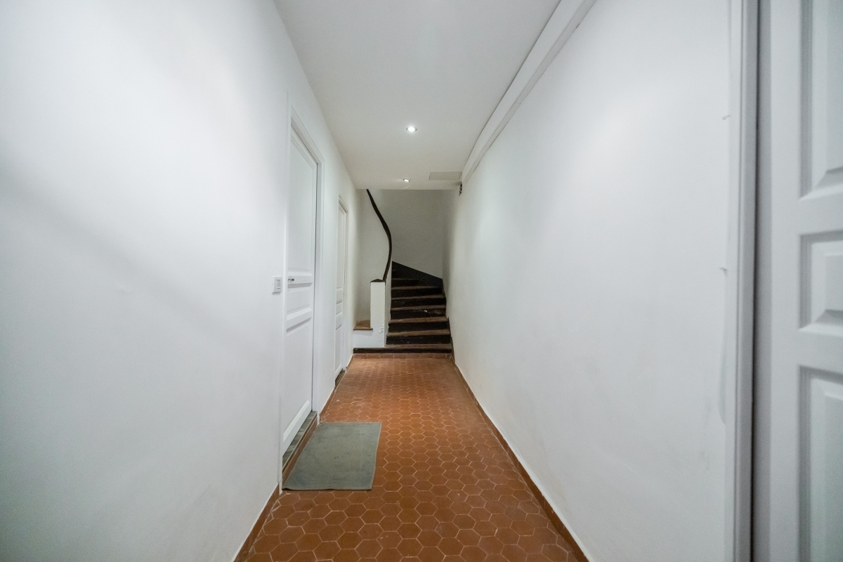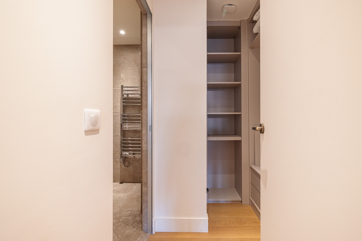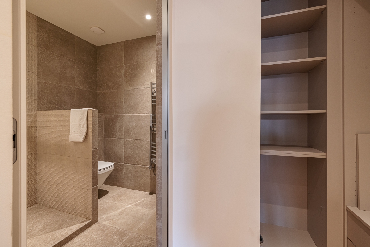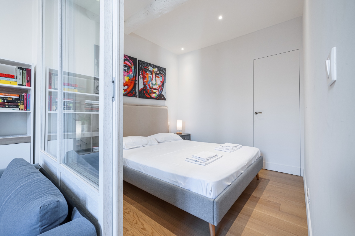 Quietly situated on the second floor of a historic building the apartment is fully air-conditioned and enjoys a modern open-plan living space with; two comfortable sofas, a large, wall-mounted flat-screen digital TV and a small dining table. This area also incorporates the kitchen which is fully equipped with; an induction hob, an oven, a microwave, a Nespresso coffee machine and a fridge freezer.