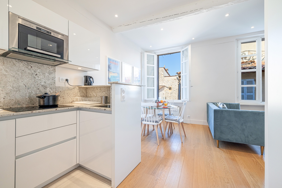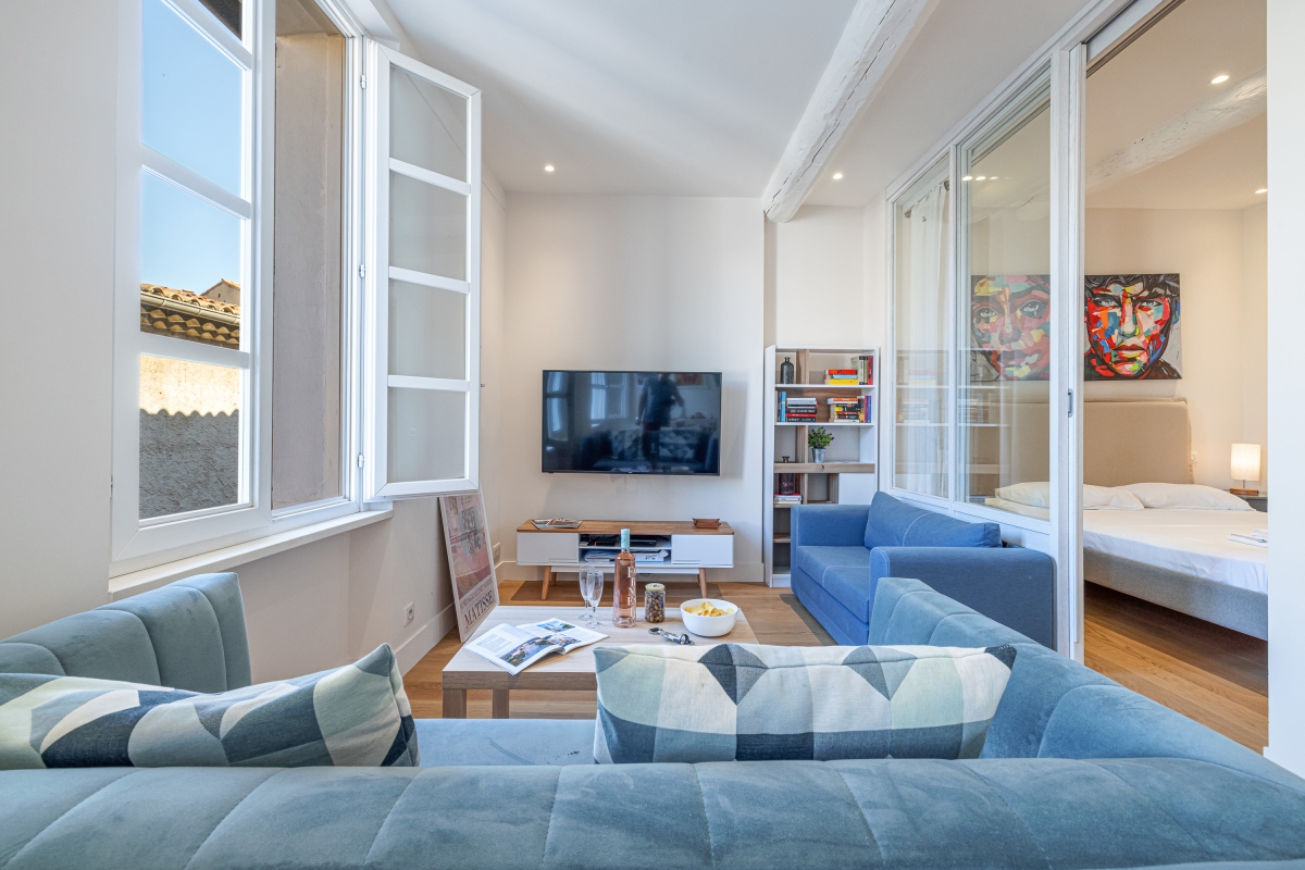 Ideally located in Marché Provençal, one of the most famous markets on the French Riviera, this delightful, light-filled retreat is the perfect year-round getaway for families and friends.