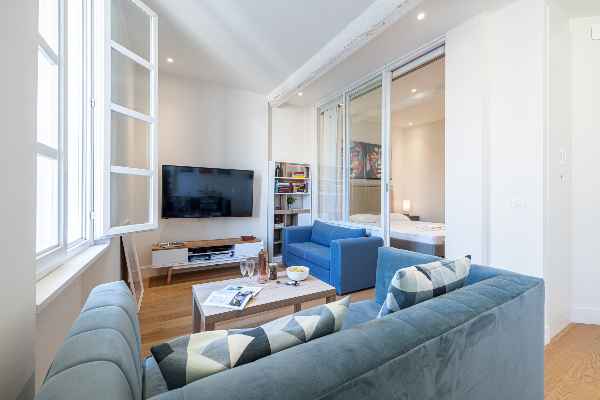 The apartment is ideally situated at the entrance of the famous Cours Massena market close to a variety of grocery stores, restaurants and bars. There are many museums, art galleries and theatres within a 5-minute walk, including; The Picasso Museum, which has one of the largest collections of the artist’s works, the Absinthe Museum and for Antibes classical history the Archaeology Museum. Guests can also indulge in orchestras, jazz festivals and techno music at Theatre Antibea.