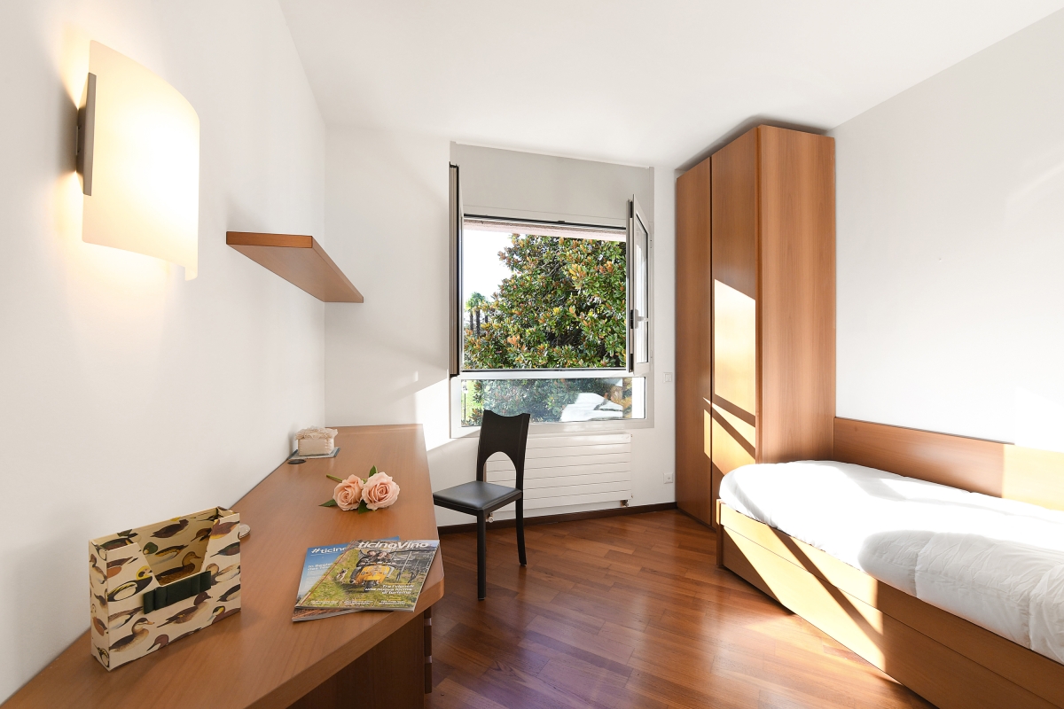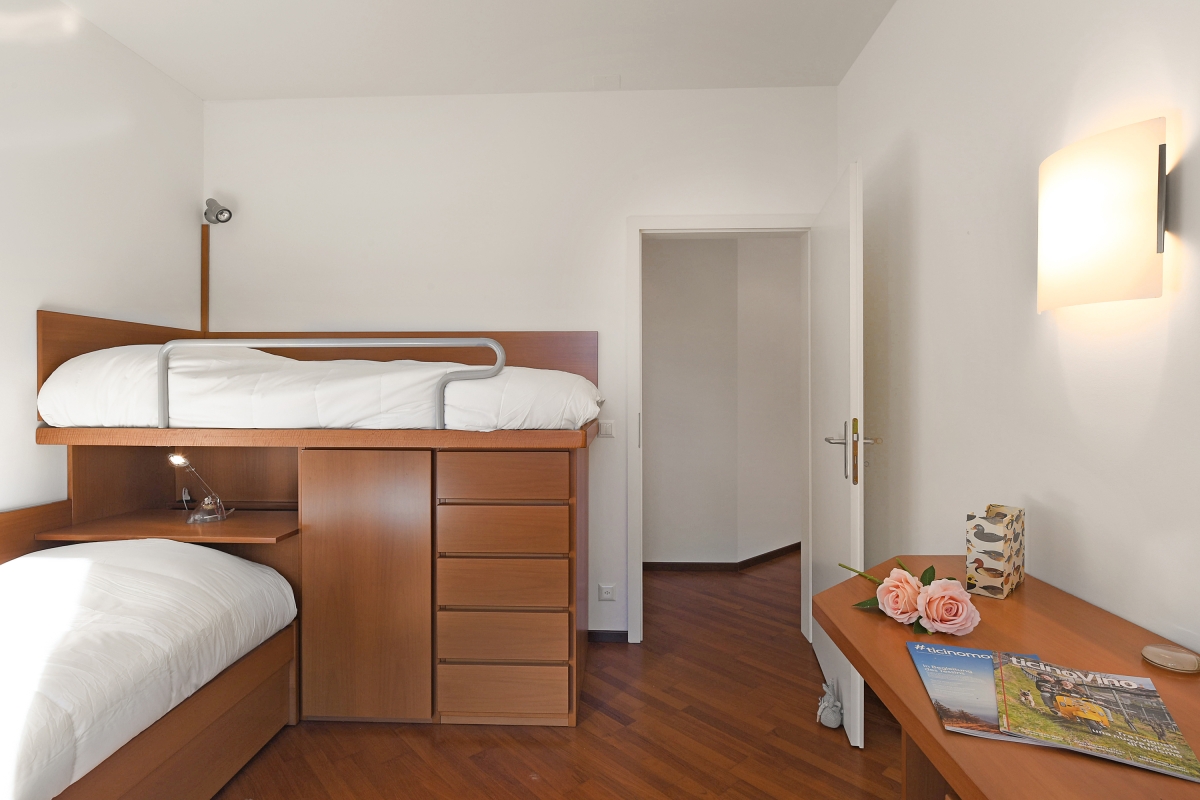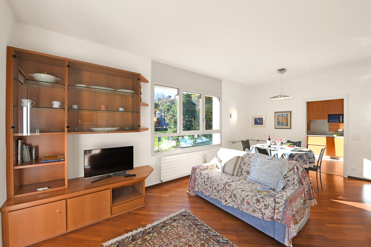 The holiday apartment enjoys a paradisal position to make the most of your stay on Lake Lugano. In just a quick few steps, you will reach the lakefront, the ferry terminal of Lugano Paradiso, the wide variety of restaurants, a supermarket, a children’s playground and the train going through the main towns (Lugano, Bissone, Melide) on Lake Lugano.