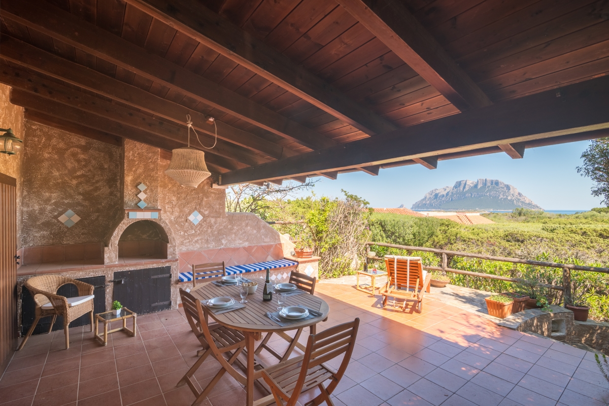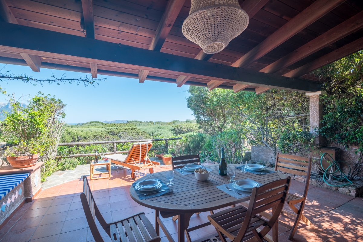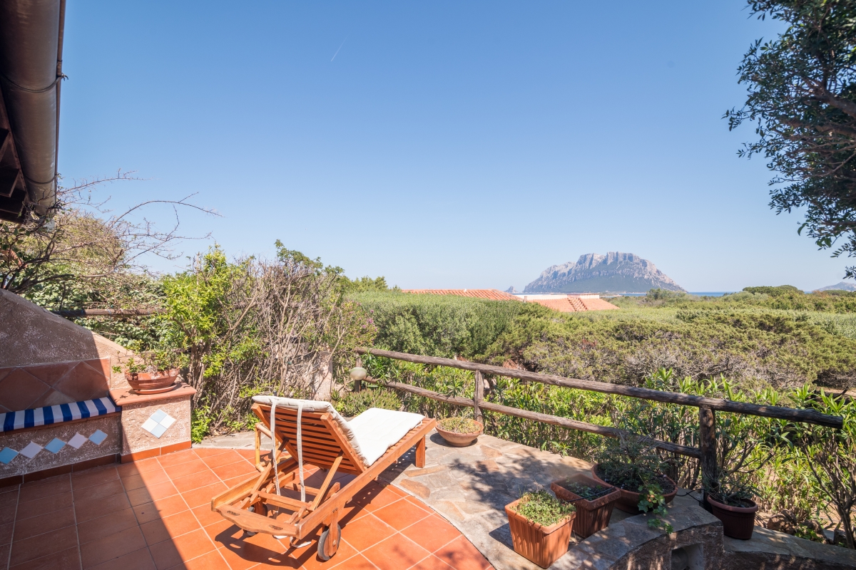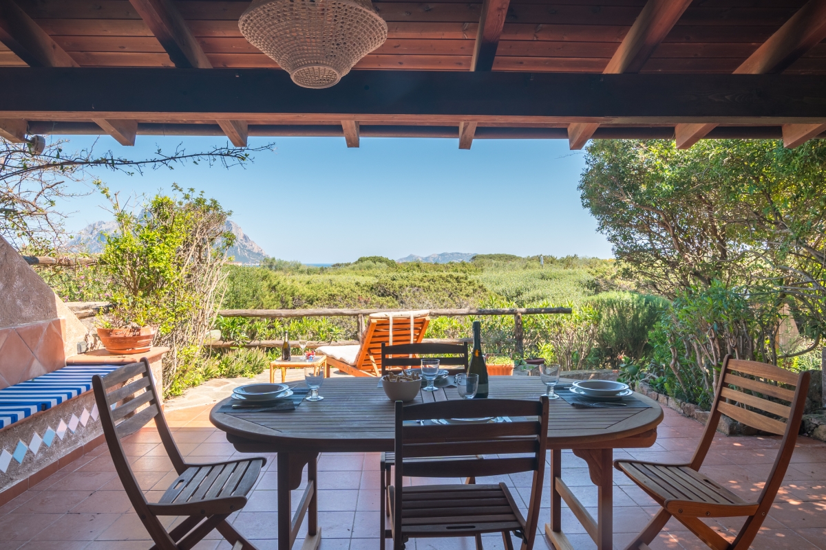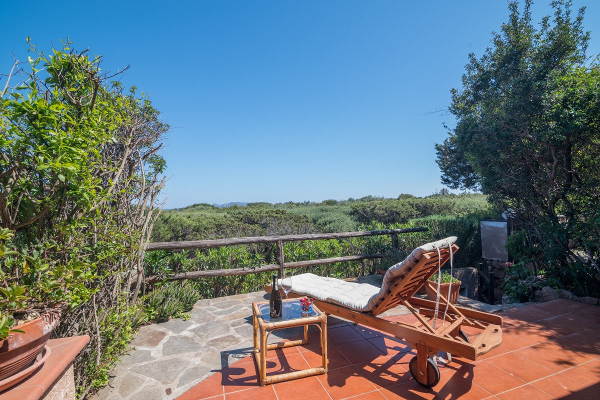 The apartment has a spacious, partly shaded balcony, which encourages outdoor living. It is furnished with sun loungers, a dining table, chairs and a banquette sofa, as well as a BBQ. Guests will want to spend time in this relaxing space enjoying the fabulous view over unspoilt nature to Tavolara Island. Steps lead down from the balcony to a private garden.