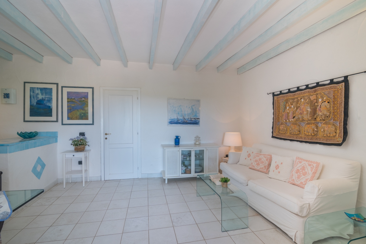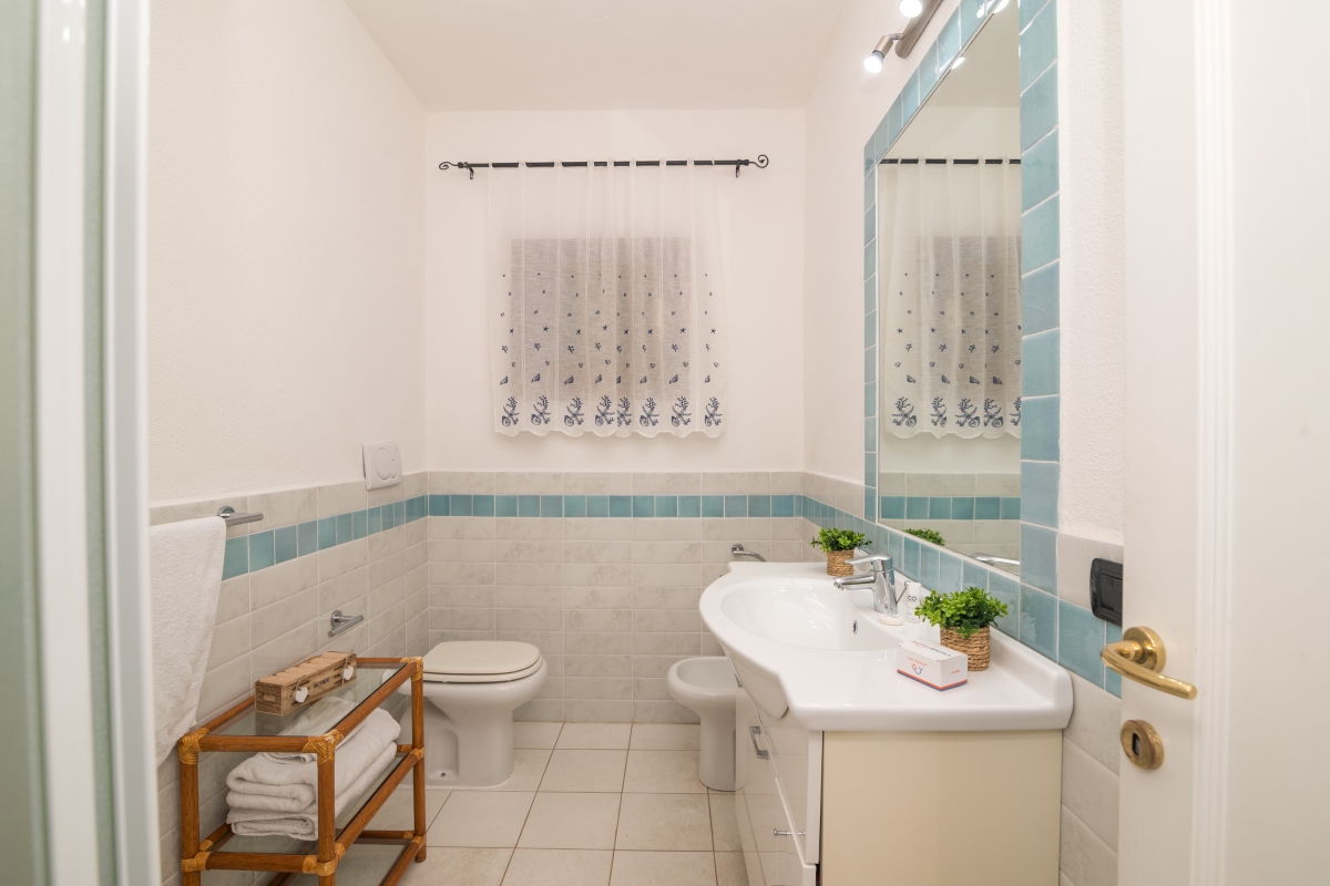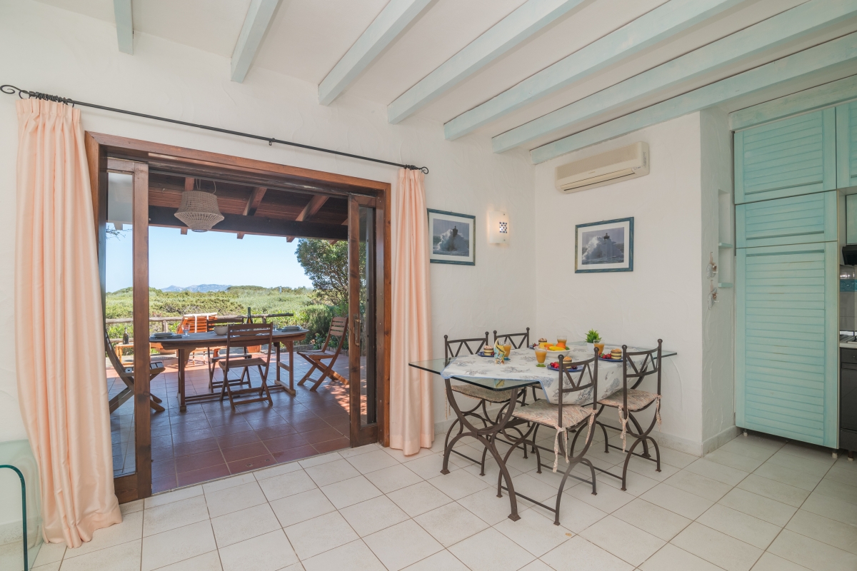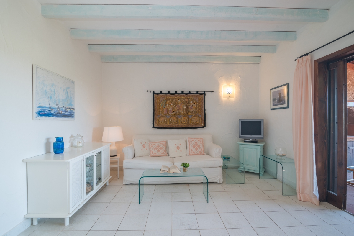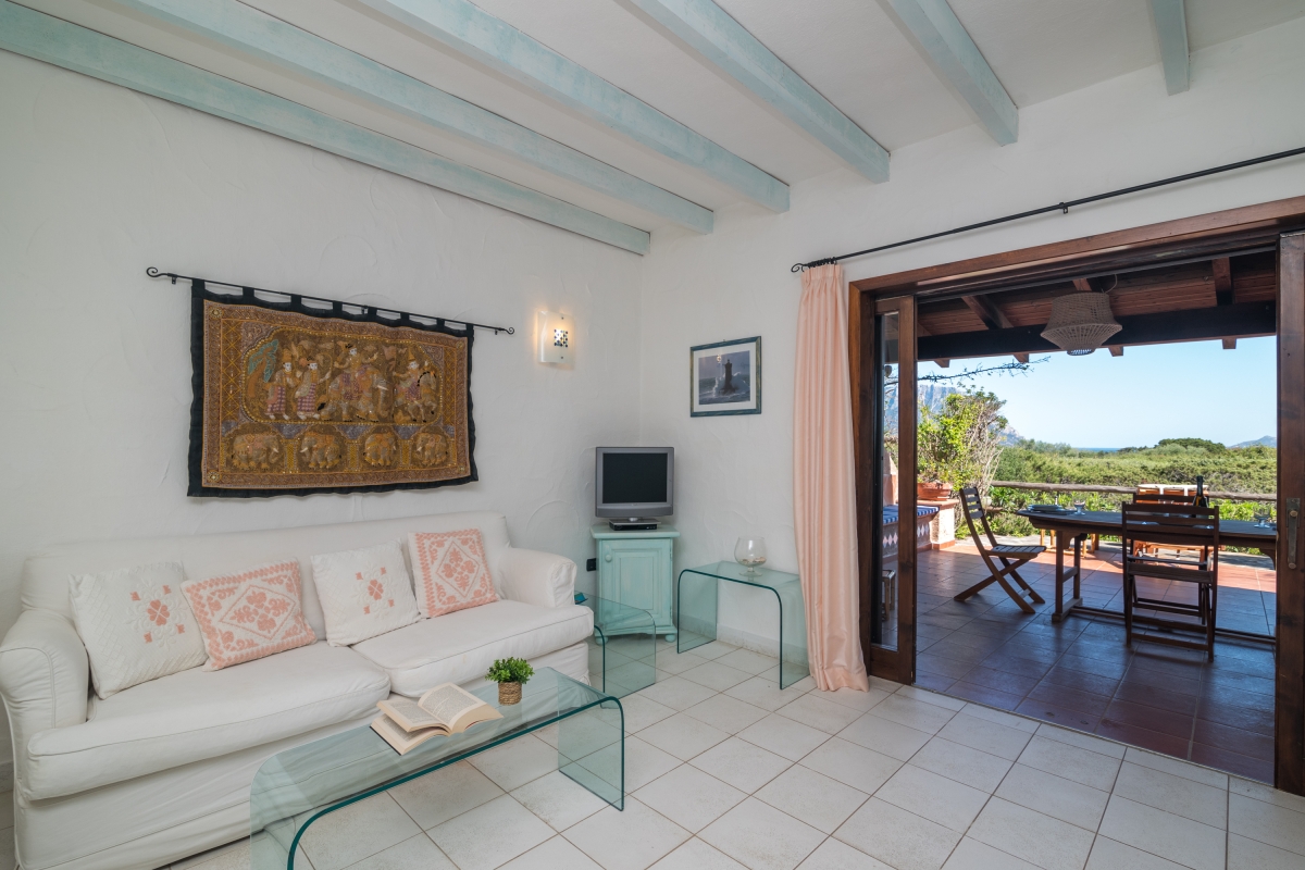 The apartment has a spacious, partly shaded balcony, which encourages outdoor living. It is furnished with sun loungers, a dining table, chairs and a banquette sofa, as well as a BBQ. Guests will want to spend time in this relaxing space enjoying the fabulous view over unspoilt nature to Tavolara Island. Steps lead down from the balcony to a private garden.
