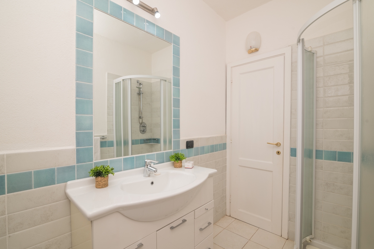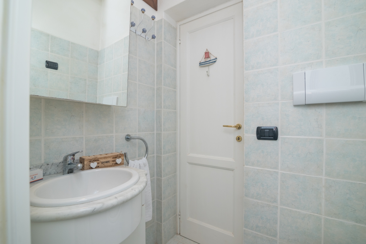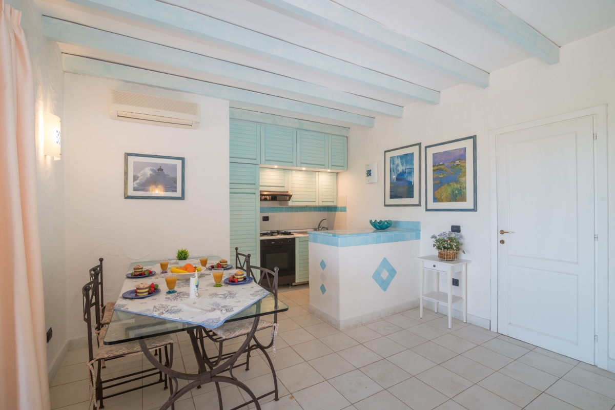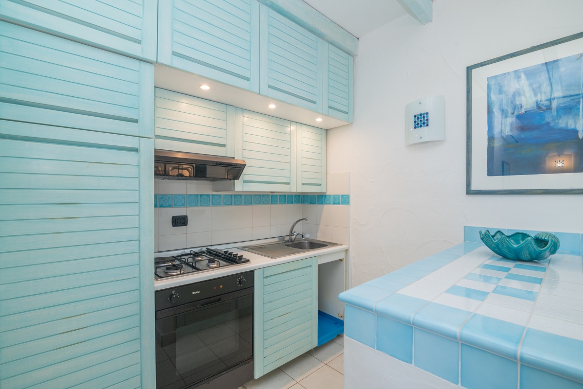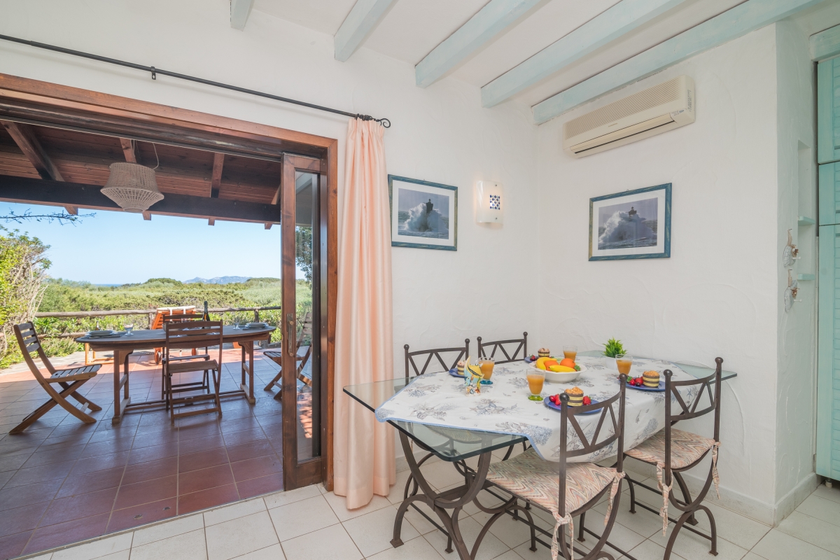 The apartment has a spacious, partly shaded balcony, which encourages outdoor living. It is furnished with sun loungers, a dining table, chairs and a banquette sofa, as well as a BBQ. Guests will want to spend time in this relaxing space enjoying the fabulous view over unspoilt nature to Tavolara Island. Steps lead down from the balcony to a private garden.