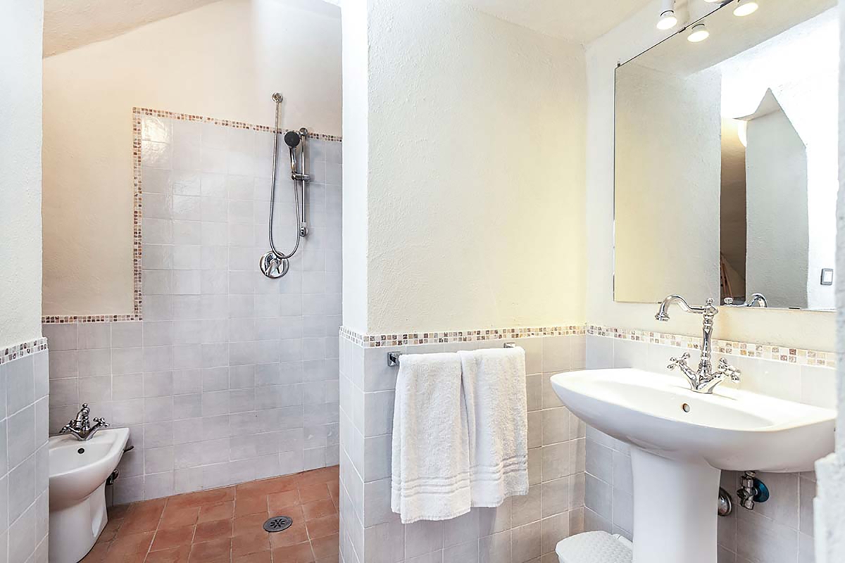 There are 2 independent bathrooms, one on the ground floor with a shower and washing machine. The 2nd bathroom, on the first floor, has a shower. Both have a bidet, basin and WC