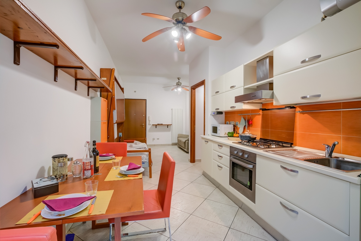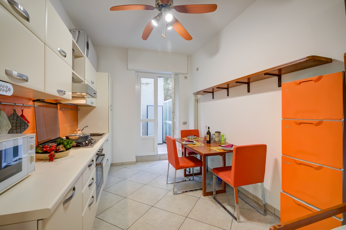 This air-conditioned apartment with ceiling fans and 1 double bedroom is ideal for families who want to discover Alassio year-round. Located on the first floor with an elevator, it offers a private terrace with an outdoor dining area for relaxing moments. Inside, the apartment features a living room with a 2-person sofa, TV, and a fully equipped kitchenette with a fridge/freezer and coffee machine, ensuring a comfortable and hassle-free stay.
