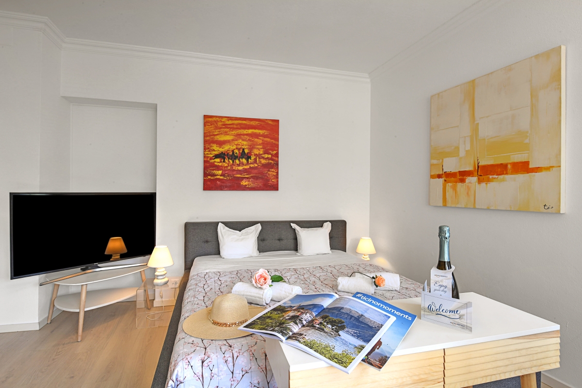 The rental’s well-serviced and connected location allows guests to reach all town amenities and attractions within a 5-minute drive. So while it is close to nature and hiking ( Parco del Monte Verita is a 5-minute drive) and biking trails, the lively Ascona centre and the lakeside, are also easily reachable with a short bike ride or a 5-minute drive. For a carefree self-catering stay, restaurants and bus stops (Losone, Posta and Losone ai Mulini) are about a 10-minute walk from the apartment.