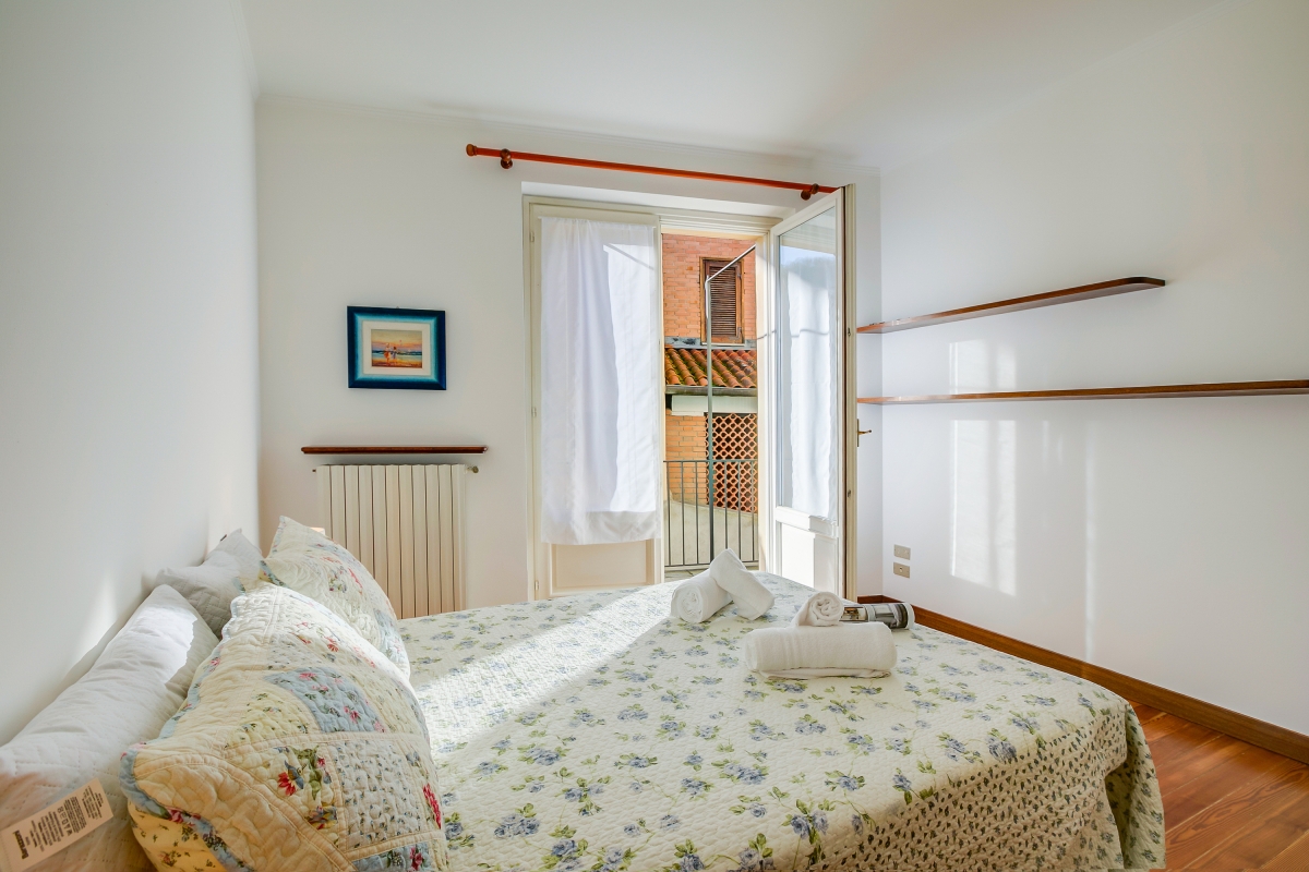 Both bedrooms enjoy access to a small balcony through large French doors