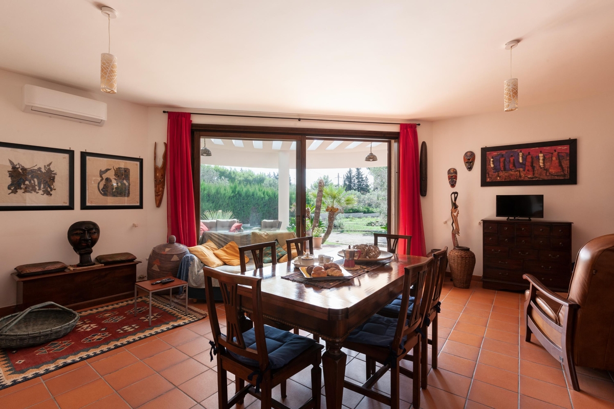 The attractive swimming pool has a Roman end with steps into the water. At the other end, there is a diving pool. The owners have added sun loungers and a parasol by the pool so guests can relax after a refreshing dip. Next to the pool is the clay tennis court, for guests’ exclusive use. The garden also includes a “pajara”, a stone-built house typical of this region, for storage.