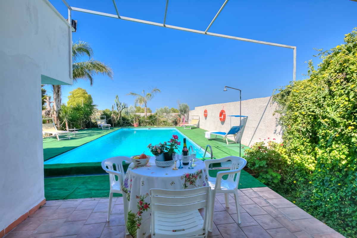A beautiful villa for 7 people which is charming both inside and out. Set in lovely private gardens, with its own swimming pool, close to the popular resort of Porto Cesareo, this makes a fantastic holiday base for friends or family.