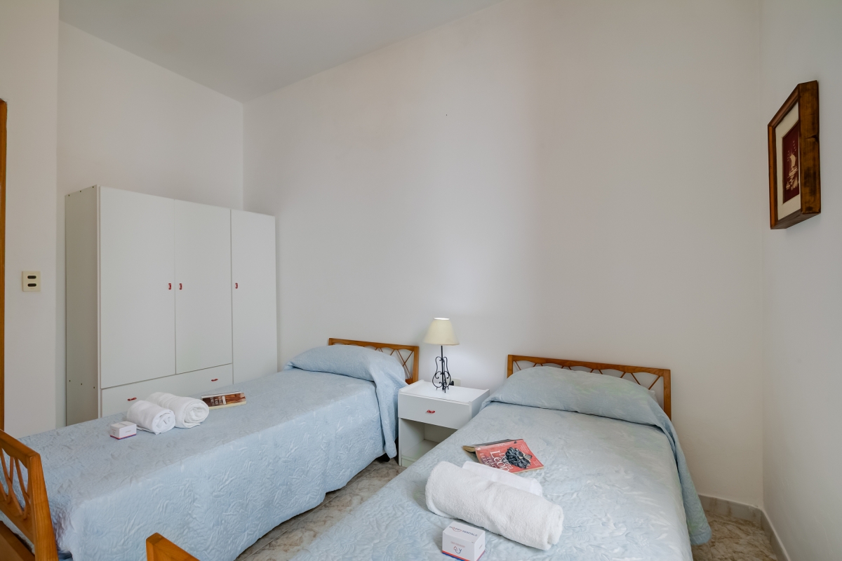 Bedroom 3: The third bedroom has 2 single beds and a wardrobe.