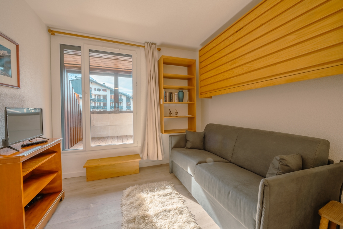 This stylish studio apartment is in the centre of Chamonix Sud, close to all the skiing facilities and all the après-ski fun.
