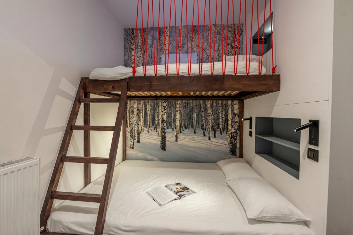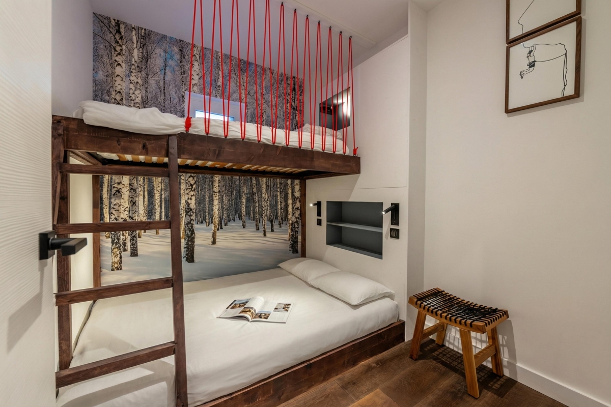 Bedroom 2: This unique bedroom has a double bed and a single bunk bed overhead.