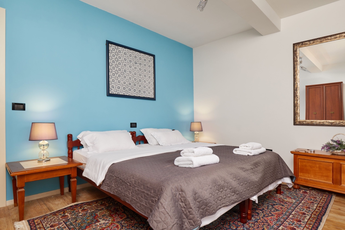 Bedroom 4: The fourth bedroom is furnished with a double bed, a double sofa bed and a wardrobe