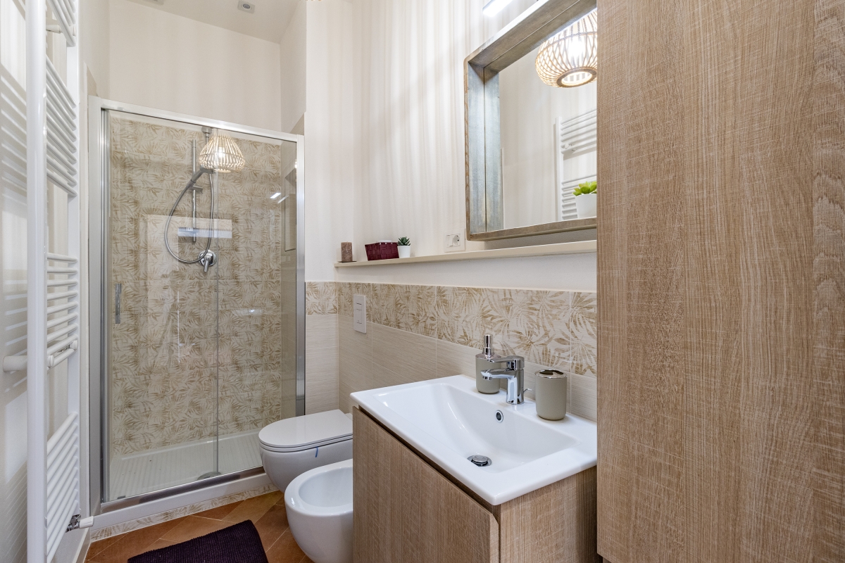 Both bathrooms are equipped with a washbasin, bidet, toilet and shower.