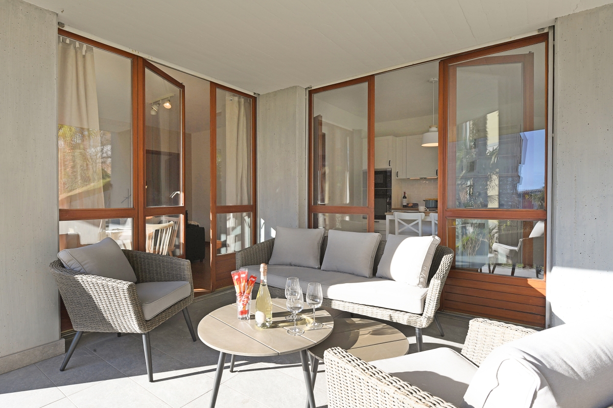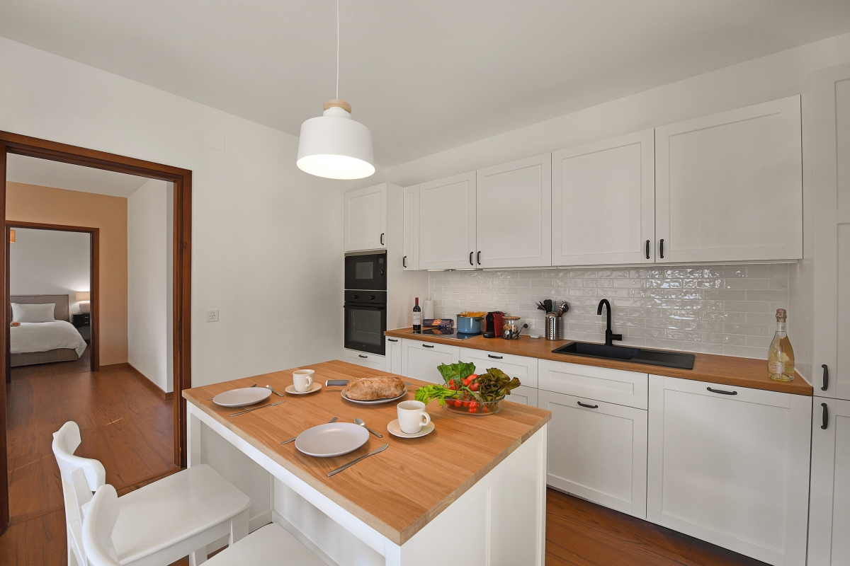 Unwind on the delightfully sunny and cosy terrace with peace all around or dine in with homemade meals prepared in the equipped kitchen of the home. A dishwasher, induction hob, Nespresso machine, oven and fridge are at guests’ disposal for a hassle-free stay. Inside, this one-bedroom retreat has an open living room with a sofa with coffee tables, indoor dining and a stylish separate kitchen with a breakfast table!