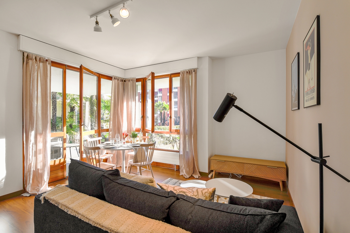 Enjoy the beautiful city of Lugano and its surroundings with this central holiday apartment for 3! With the beautiful lakefront, historic Piazza Riforma and Lugano’s luxury stores just a few steps away, this modern ground-floor holiday apartment with a private terrace is ideal for carefree travels.