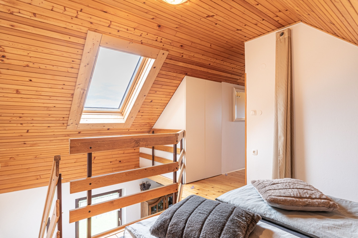 On the top of a sun-soaked hill surrounded by delightful views of the Pannonian Plains and sunshine, this charming 2-level vineyard cottage welcomes families, couples, and friends to enjoy panoramic views of endless vineyards. With room for 6 guests, it offers indulgent sauna and Jacuzzi amenities, perfect for relaxation. The private garden offers outdoor facilities for all ages: unwind in hammocks while children play garden games, or savor barbecued dishes under the sunshine.