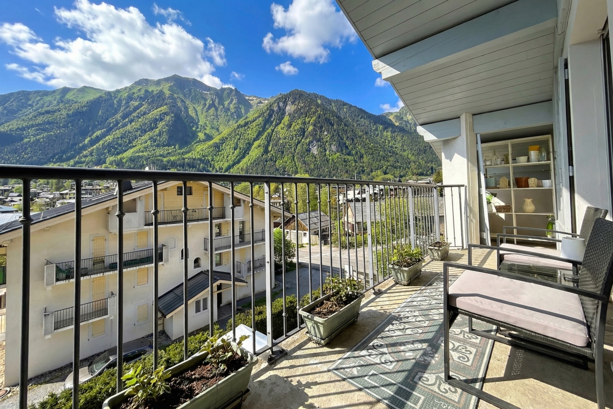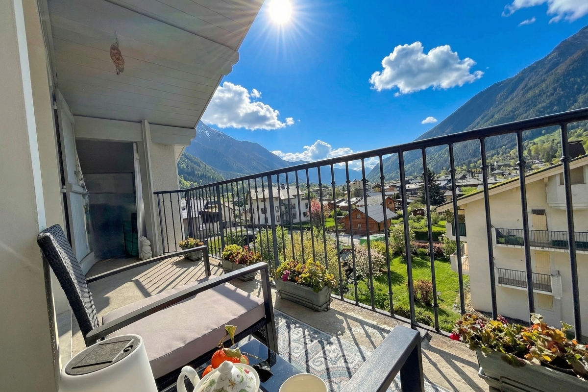 The apartment enjoys a central location, just steps from the lively centre of Chamonix, and close to the ski slopes, only a two-minute walk from the Aiguille du Midi cable car.