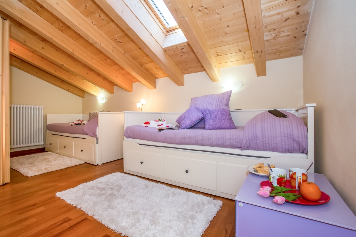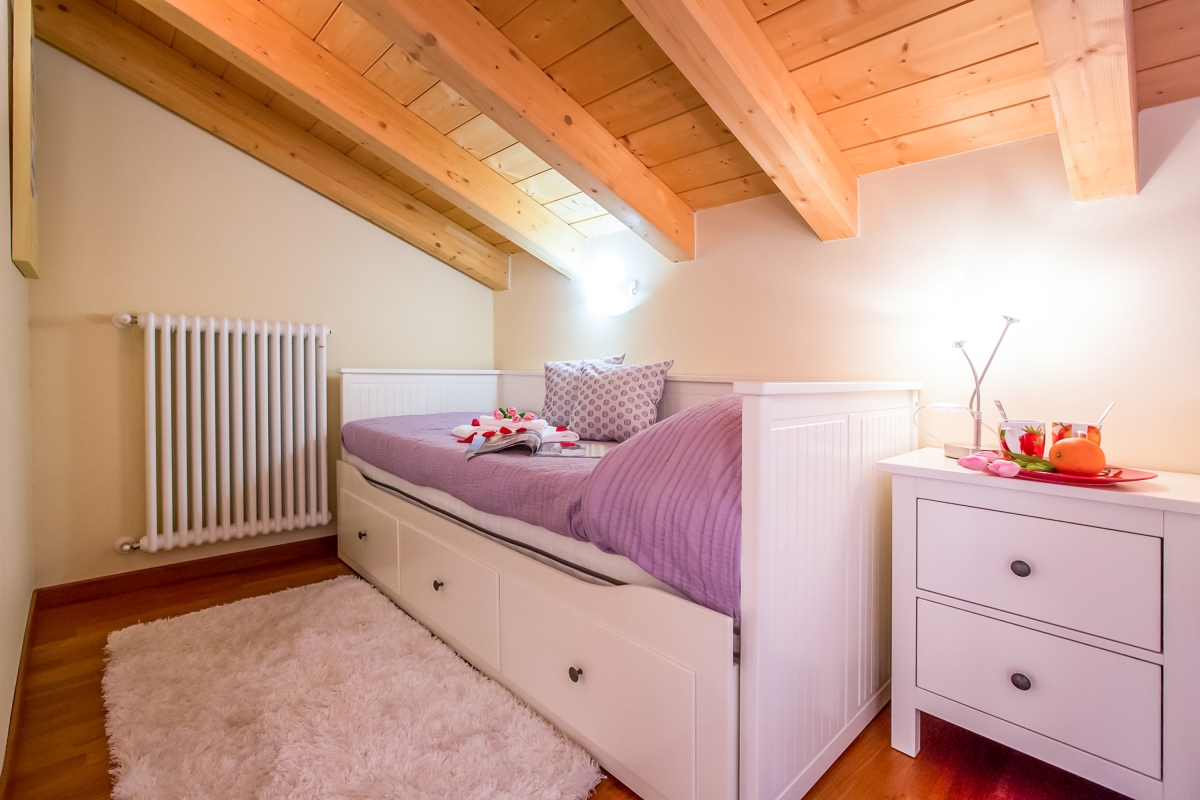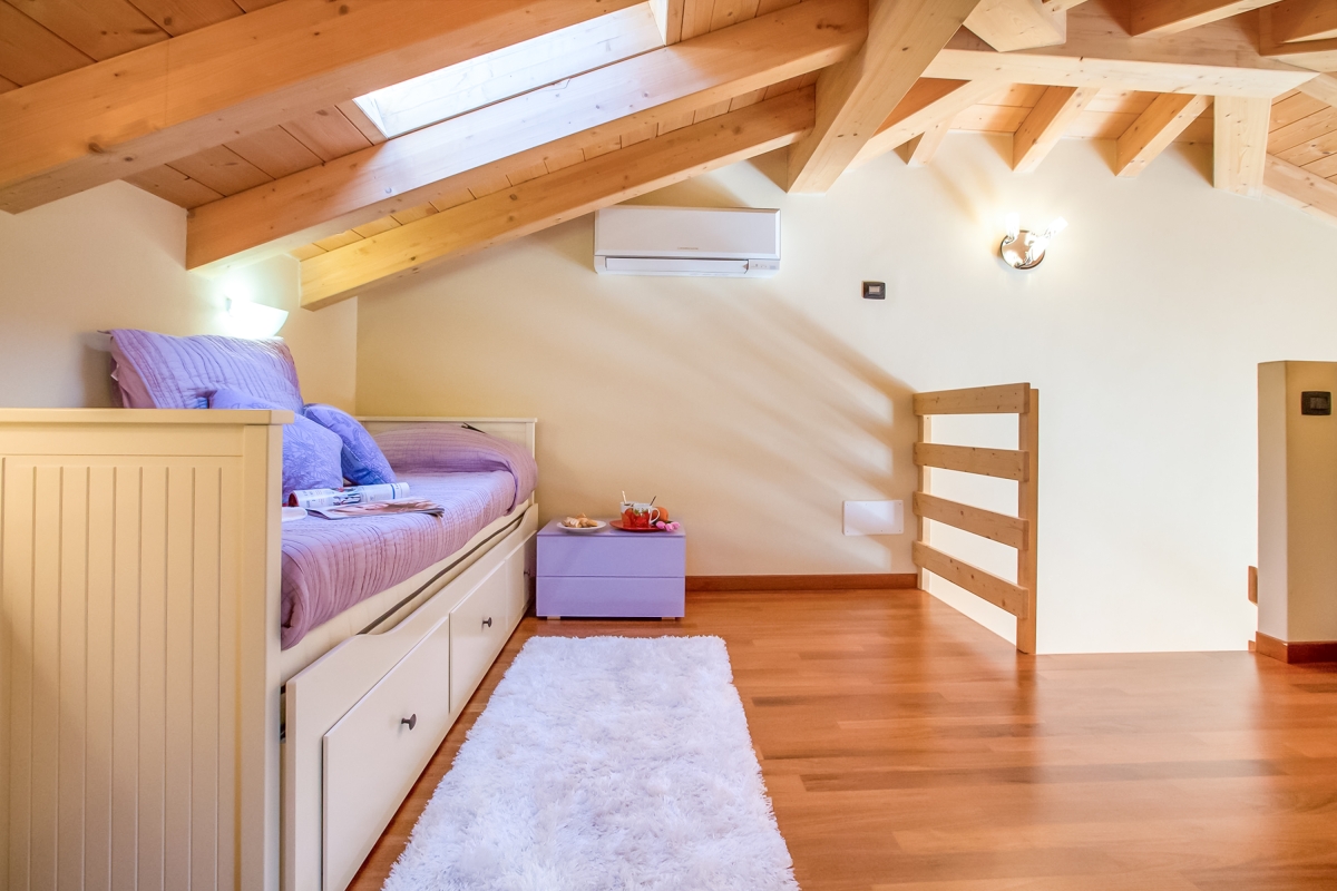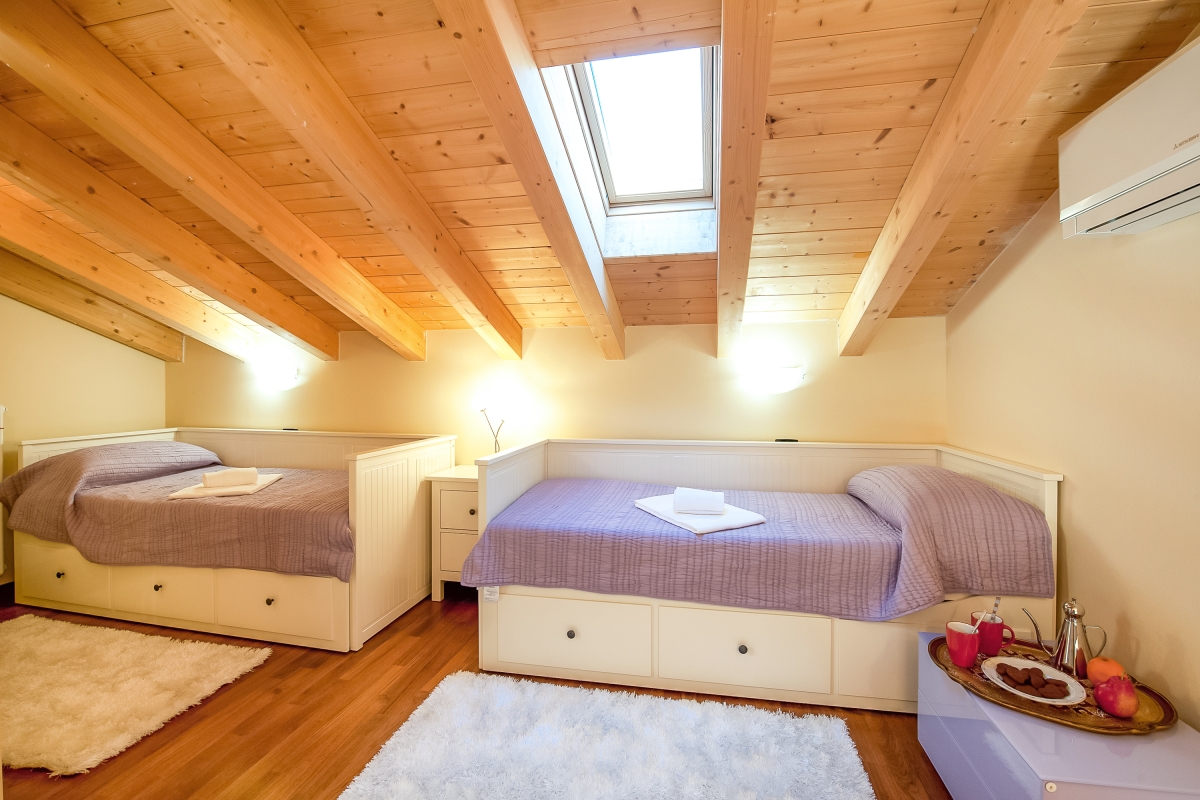 The spacious master bedroom is elegantly furnished with Italianate pieces and a solid wooden double bed, a wardrobe and wall mounted flat screen TV for guests’ entertainment. A second bedroom complete with a luxury en-suite shower room is situated to the loft floor of the holiday home and is furnished with two single beds and a wall mounted TV; making it ideal for children.