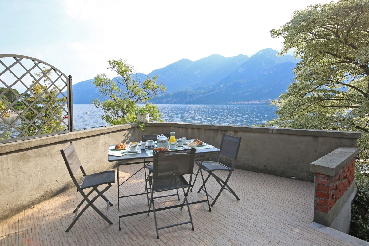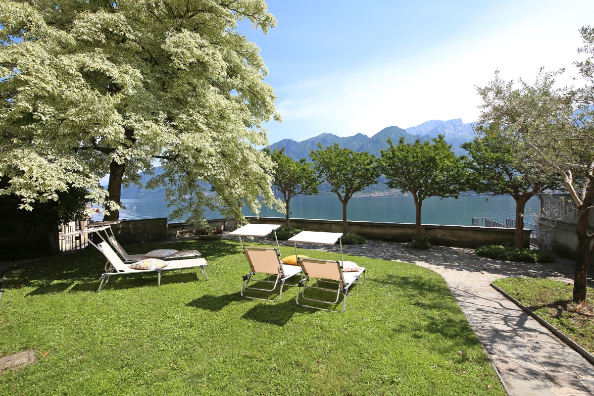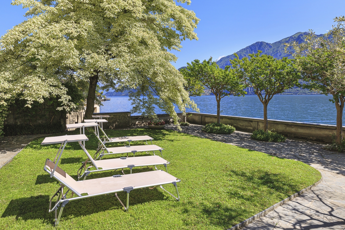 The villa’s gardens are delightful, with a variety of trees offering shade, as well as an open lawn, where guests can relax on sunloungers and enjoy the peace of Lake Como. There is an open terrace right on the lake with a table and chairs. It is the perfect spot for breakfast or sundowners.