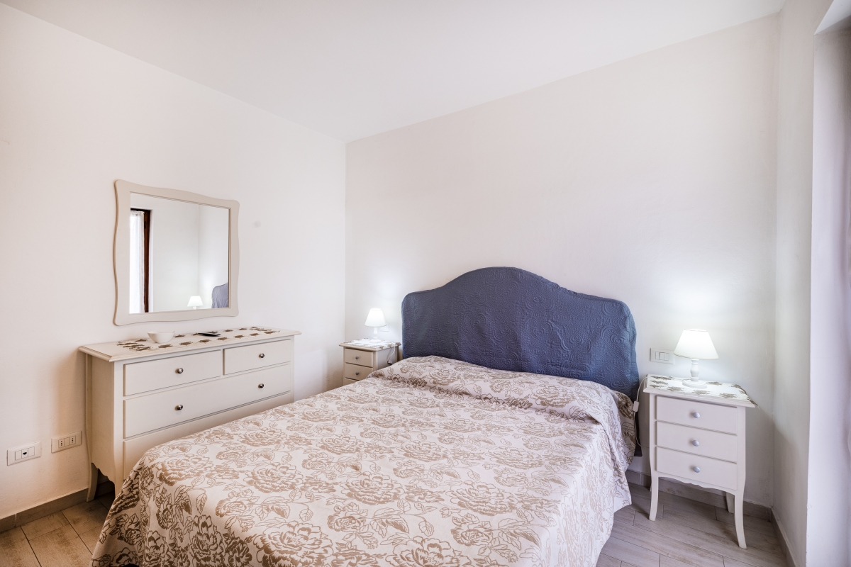 Bedroom 1: The first bedroom is furnished with a double bed and a wardrobe