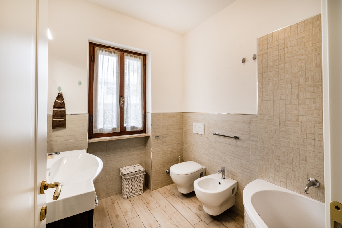 Bathroom 1: The first bathroom is fitted with a bath, a bidet, a WC and a washbasin