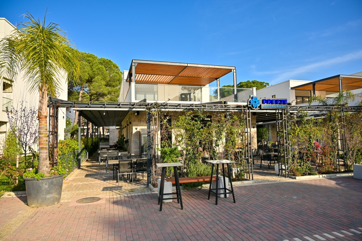 San Pietro Resort is in the heart of Lalzit Bay. The area is one of the most popular holiday destinations in Albania. It is known for its child-friendly beaches, good restaurants and bars. More active guests can enjoy scuba diving, jet-skiing, water-skiing and a children’s playground. For self-catering there is a supermarket just a 1-minute drive away.