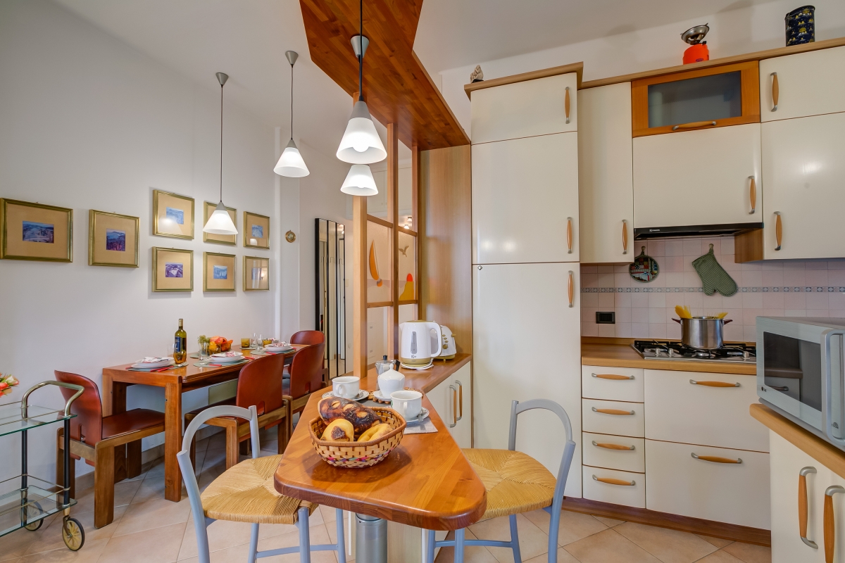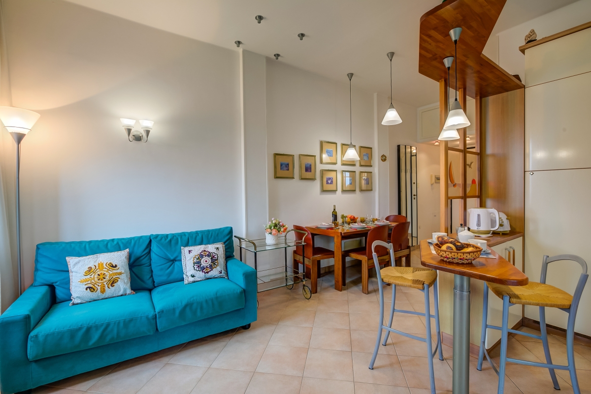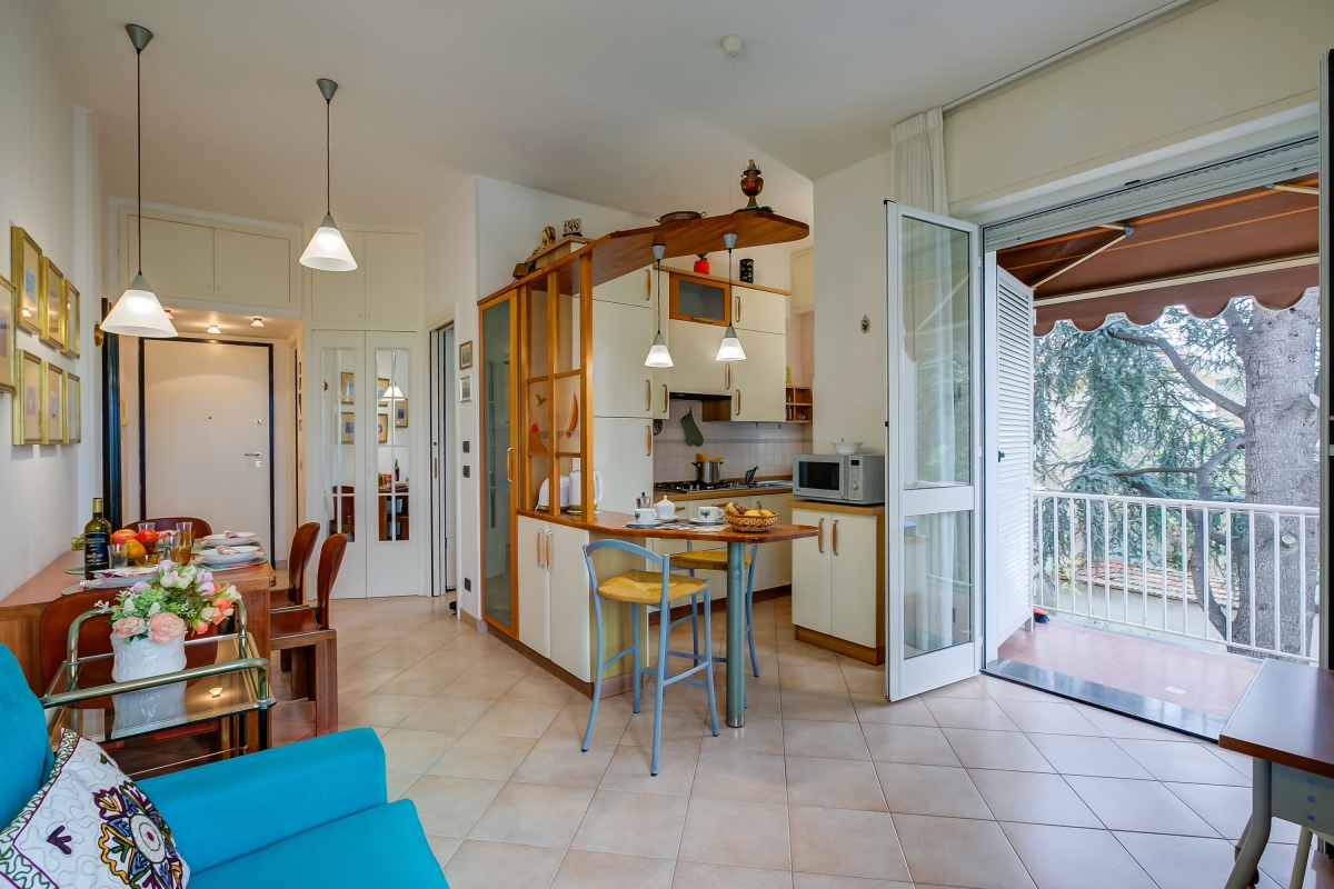 Located in a quiet neighbourhood by the shores of the Ligurian Coast, the apartment has an effortlessly inviting ambience. It is a breezy second-floor apartment featuring a private balcony for you to enjoy the peaceful surroundings. With one bedroom and a well-furnished living space, it is ideal for a group of 4.
