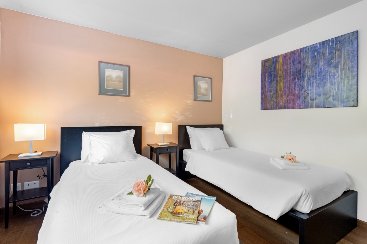 Bedroom 3: A light-filled bedroom with 2 single beds and a wardrobe.