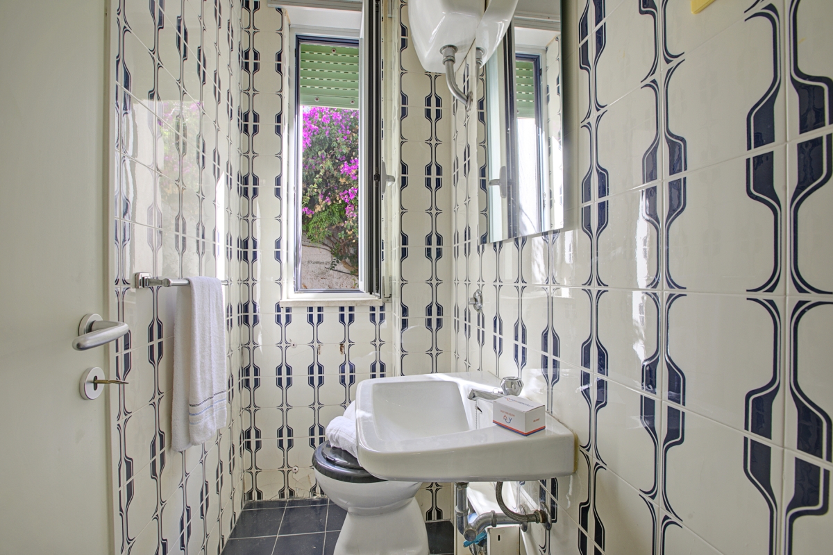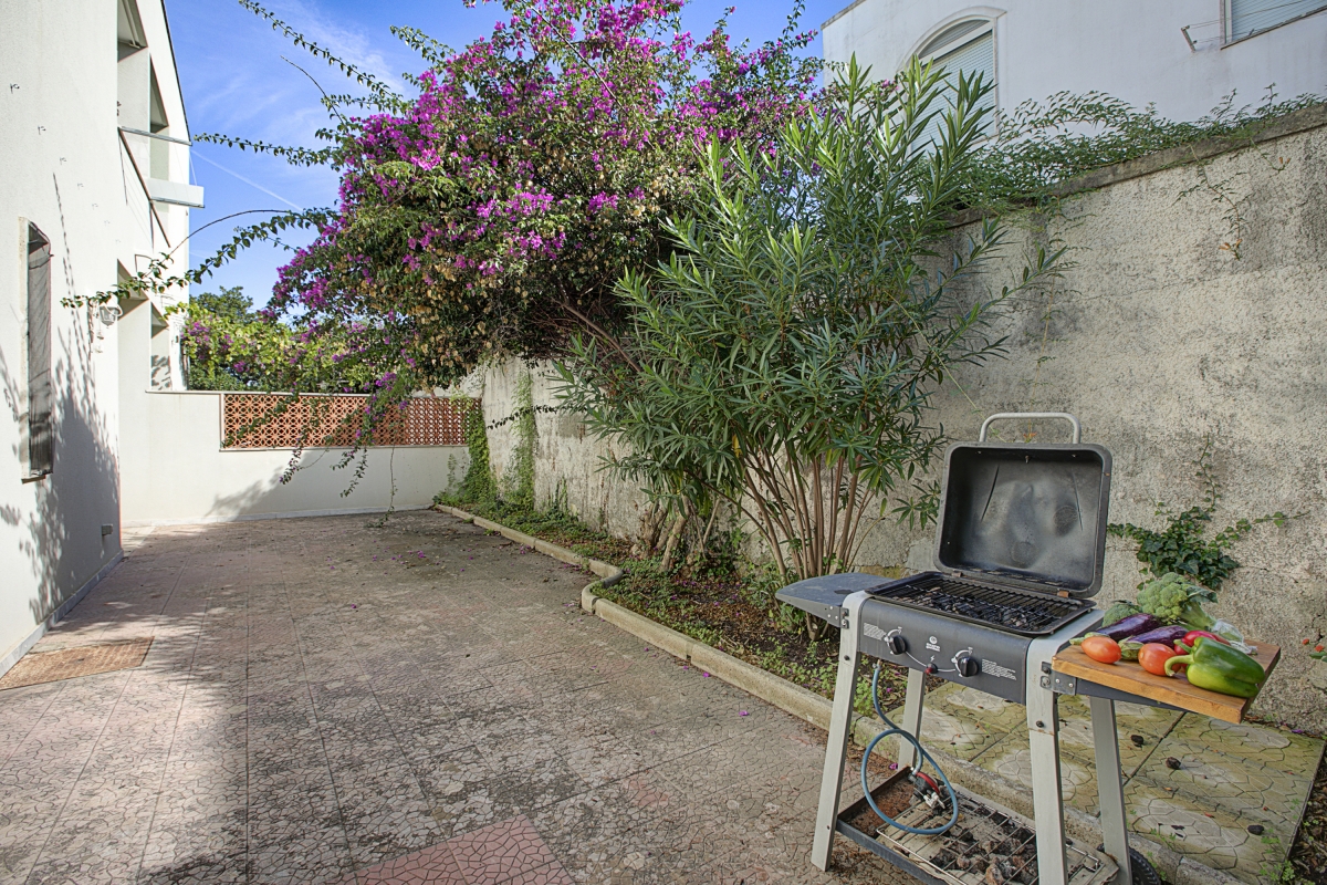 The apartment is next to the swimming pool, allowing guests to keep an eye on their children from the comfort of their garden. The paved private garden is partly shaded by bright Bougainvillea and is furnished with a table and chairs for meals al fresco. Guests can sunbathe there in private or sit out by the swimming pool. The pool is open from 10am to 2pm and then 4pm to 6.30pm. After 6.30pm there is no lifeguard.
