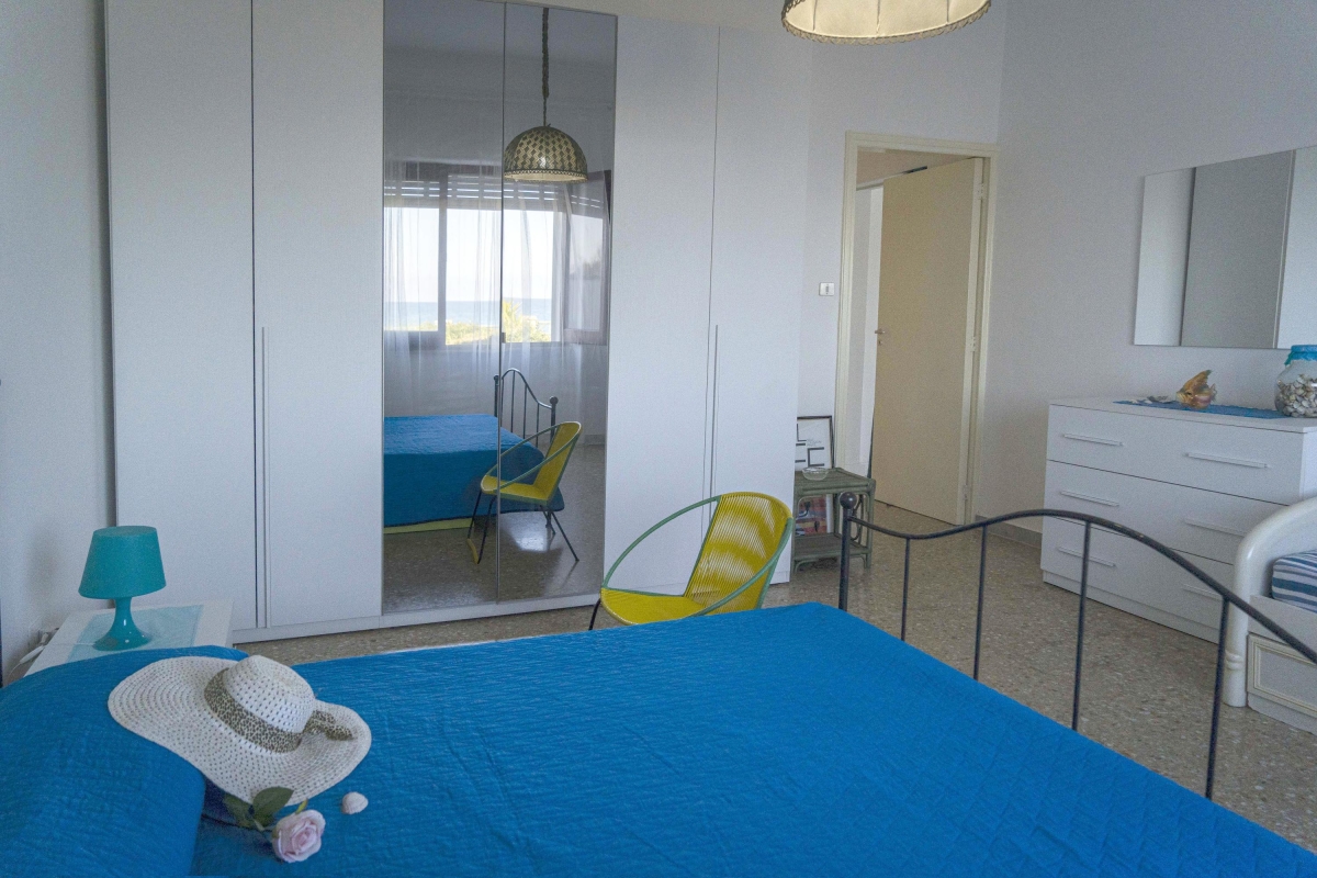 Bedroom 1: The light-filled master bedroom with views over the sea, has a double bed, a single bed and a large wardrobe.