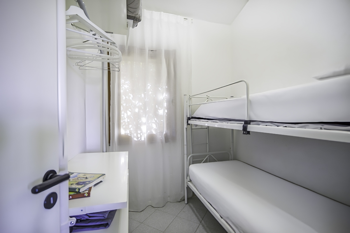 Bedroom 2: The second bedroom is furnished with a bunk bed and a hanging rail