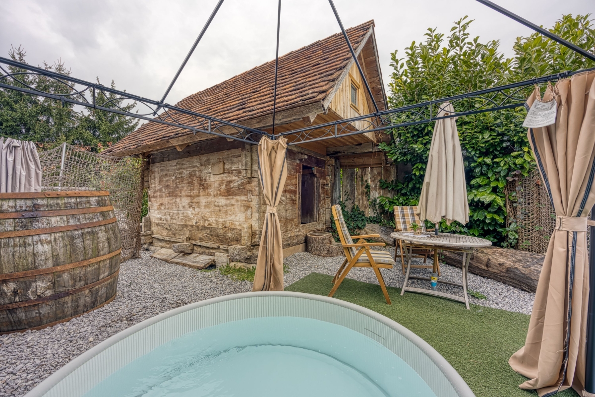 The property is situated in Gabrje pri Stični a small village located in central Slovenia a 5-minute walk from the Stična Monastery. The surrounding countryside offers plenty of opportunities for outdoor activities, visitors can take scenic hikes or bike rides through the hills and explore nearby nature reserves such as the Stična Marshes (Stiška močvirja).