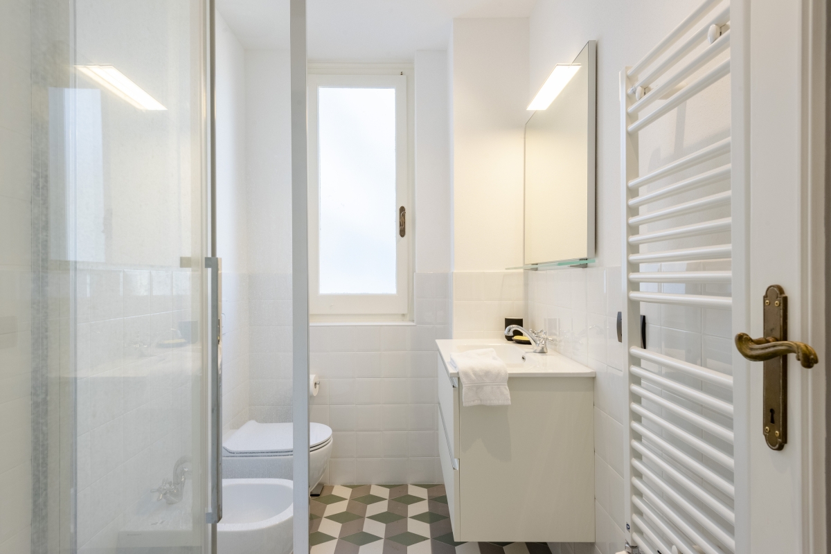 Bathroom 2: A private bathroom well equipped with a shower, a bidet, a WC and a basin with a mirror.