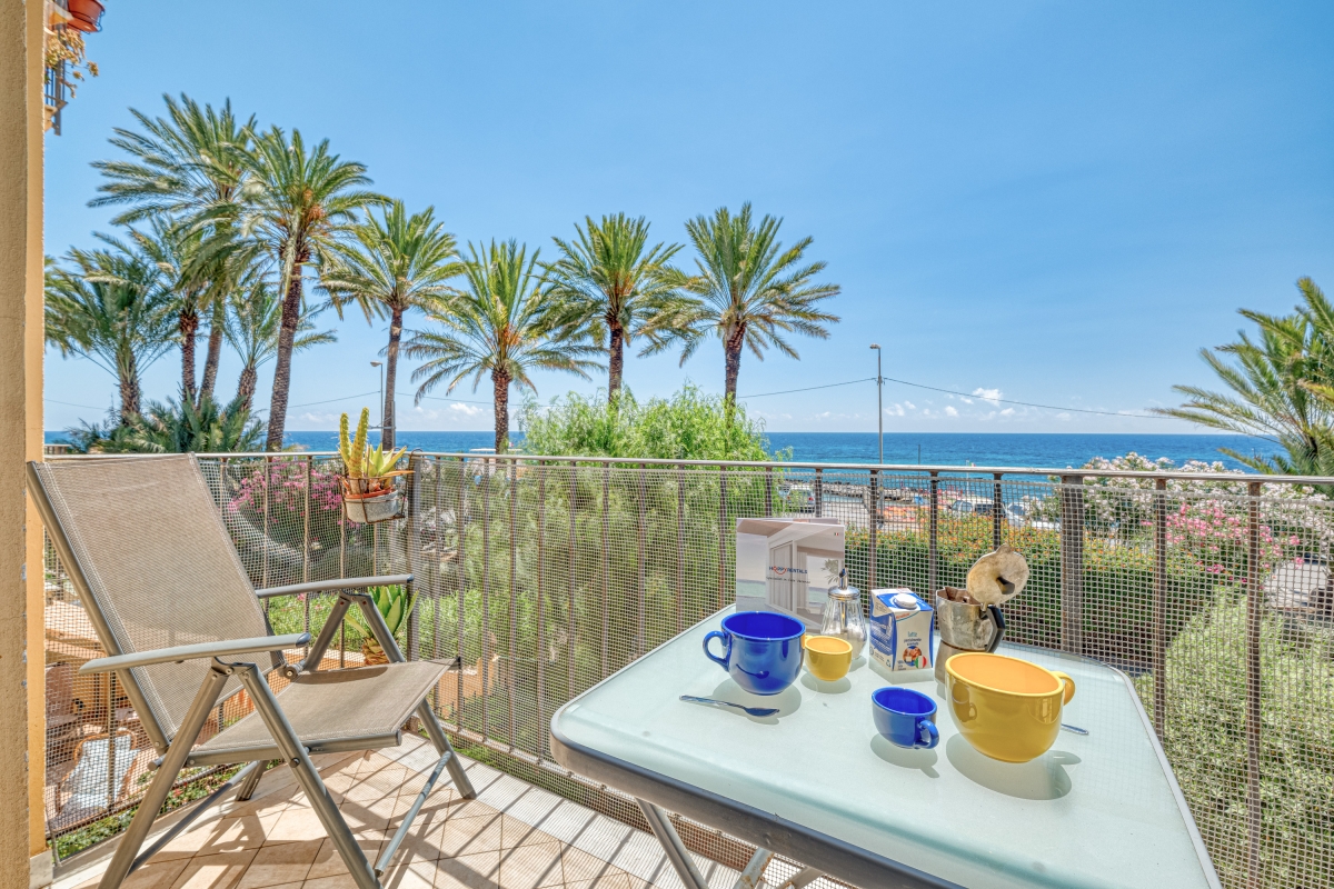 Nestled amidst greenery, this charming balcony apartment offers splendid sea views with outside dining.