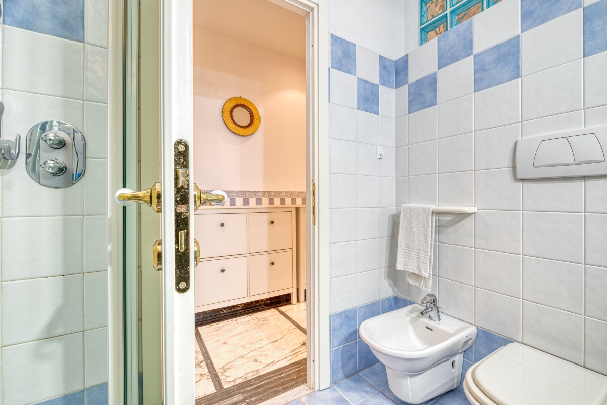 Bathroom 1: A private ensuite bathroom equipped with a shower, a bidet, a WC and a basin with a mirror.