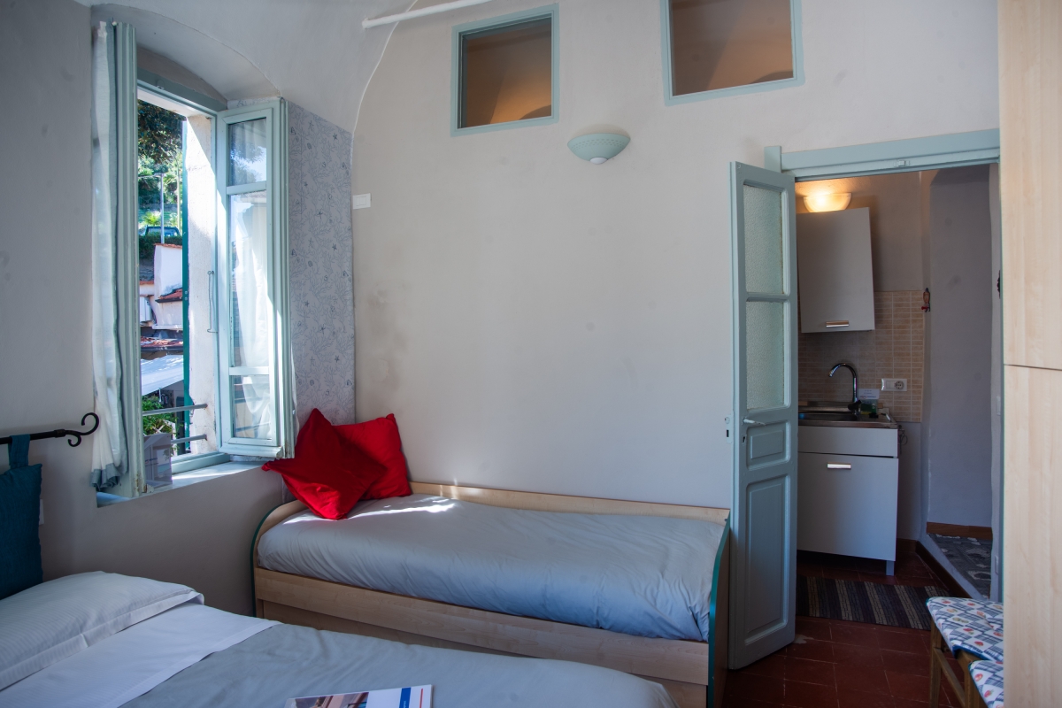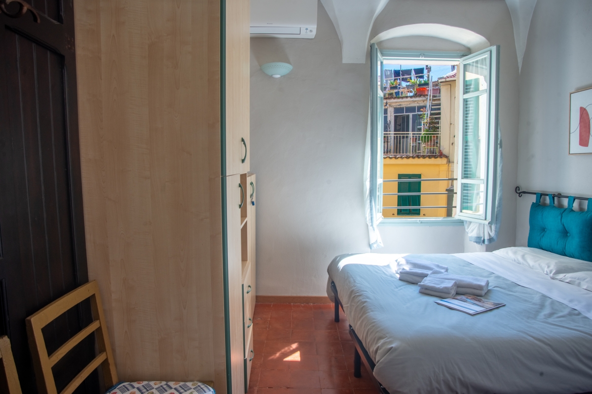 Conveniently located in the characteristic alleyways of Sanremo, this apartment enjoys proximity to the shore and the historic centre. It is a lovely one-bedroom apartment on the third floor and comfortably hosts up to 4 guests. The arched ceiling of the apartment adds to the grandeur and enhances the charm. Upon entering, you will find a cosy open-plan living room designed with minimal furniture like a sofa, a dining table with chairs and a cupboard for storage.