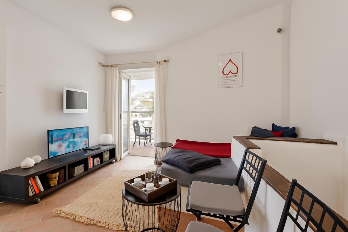 Located in the quiet alleyways of the town, this apartment enjoys proximity to the beaches and many historical attractions. Spread across 3 floors, it has 2 spacious bedrooms and a bright living room opening onto the balcony with outside dining. This stunning house is gracefully designed in rustic architecture with tasteful interiors to accommodate a group of 5. The bright and spacious living room is arranged beautifully, with stairs leading to the terrace offering breathtaking sea views, overlooking the town.