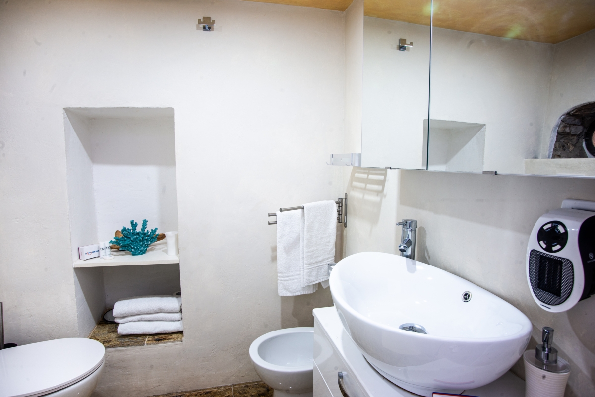 Bathroom 1: This bathroom is equipped with a bidet, a shower, a basin, a mirror and a WC.