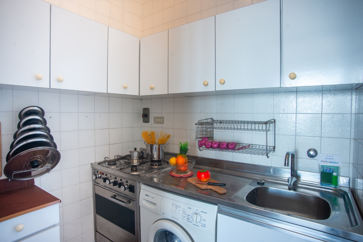 For self-catering, there is a fully equipped kitchen with a cooker hob, a Moka coffee machine, an electric kettle, a microwave, an oven and a fridge with a freezer.