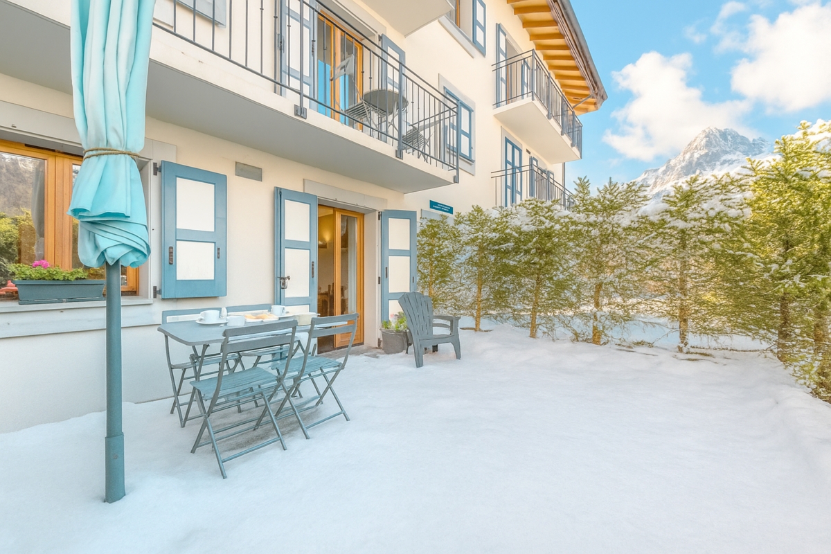 This charming, ground-floor apartment, with a private garden, is in a family-friendly residence. Set in a spectacular mountain landscape, it makes an ideal base for an exciting holiday at any time of year.