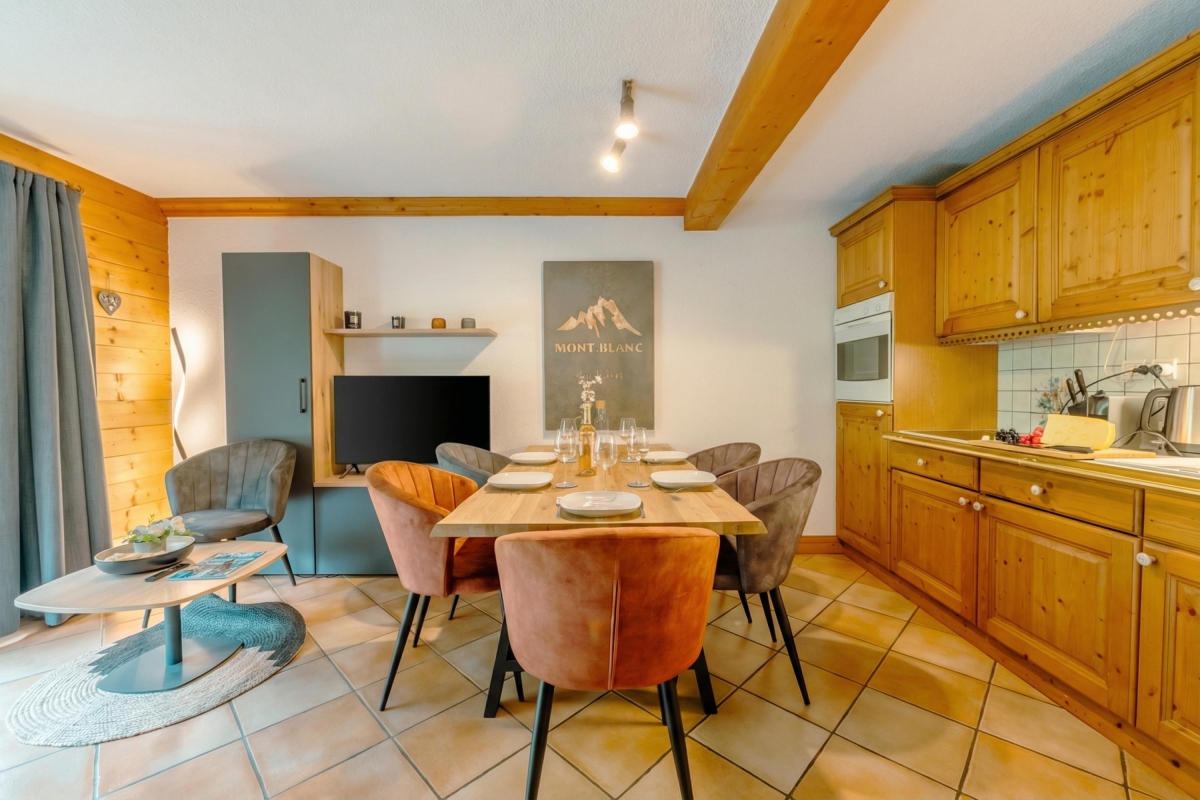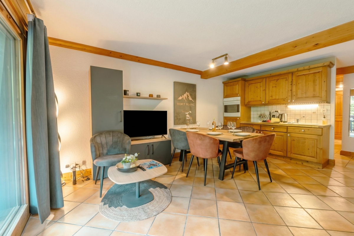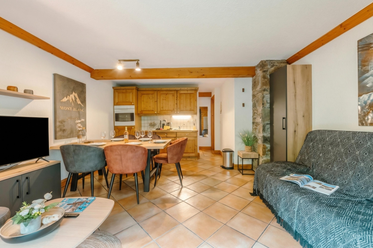 This stylish apartment for 5 people, in the heart of Chamonix, has panoramic mountain views. Surrounded by some of the most beautiful landscapes in Europe, the apartment offers everything you might want for the perfect holiday all year round.