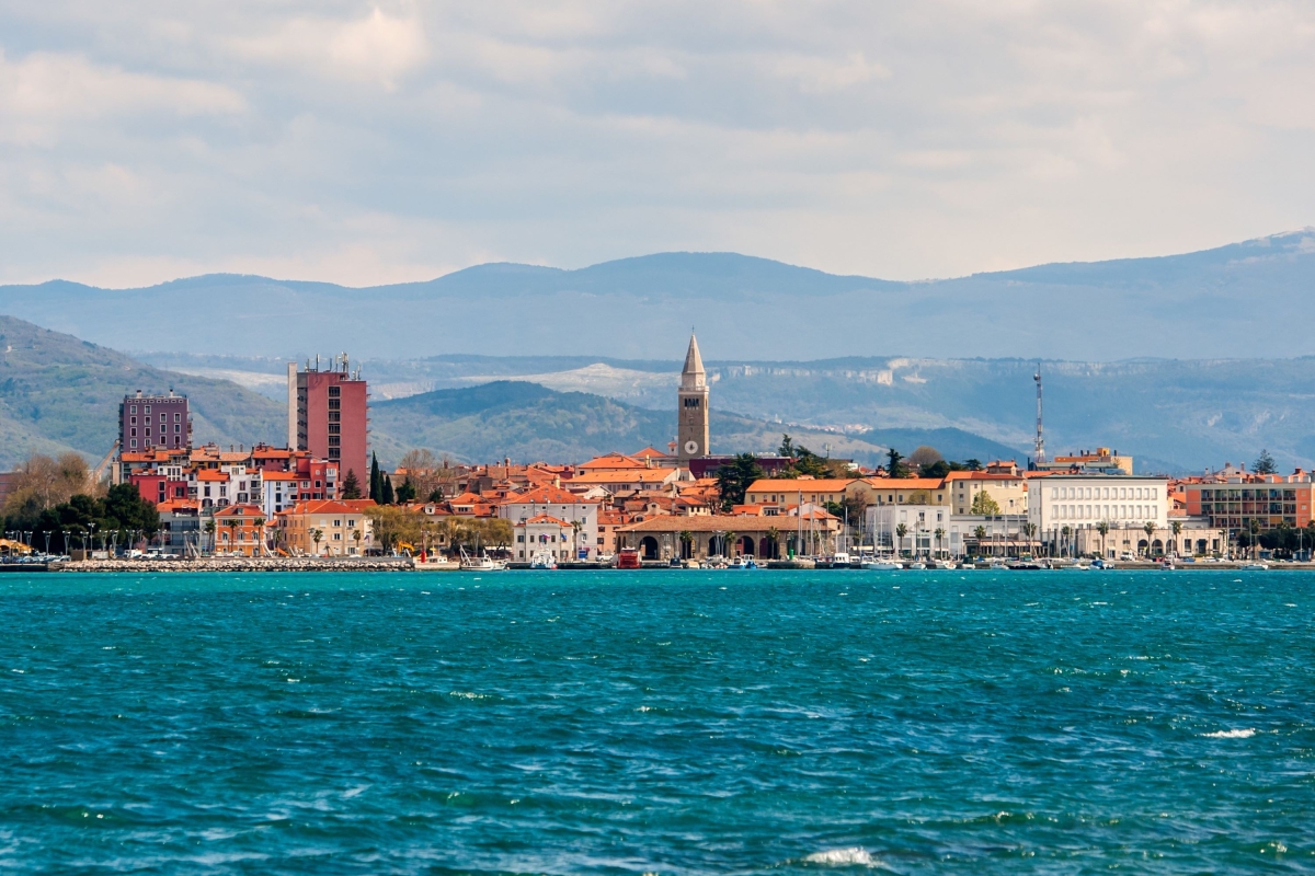 The closest international airport is Trieste Airport (TRS) in Italy, approximately a one-hour drive away.