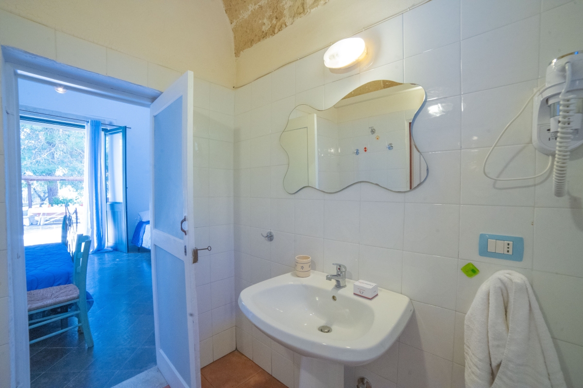 A rural farmhouse ideal for experiencing the sunny Salento countryside, embraced by 4 hectares of outdoor space. The green space sees flowers, olive trees, pines, cypresses and fruit trees such as citrus fruits (lemons, manders, oranges), figs and prickly pears.