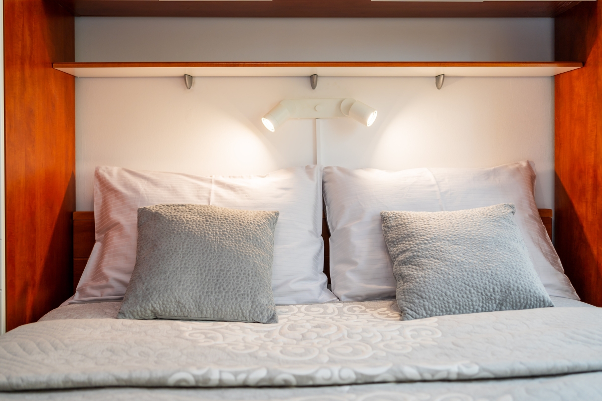 Bedroom 1: An elegant double bedroom with a wardrobe.