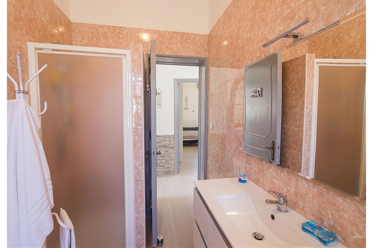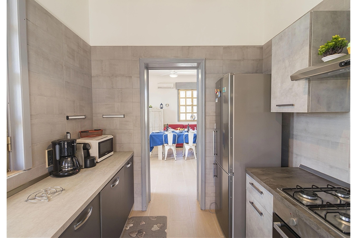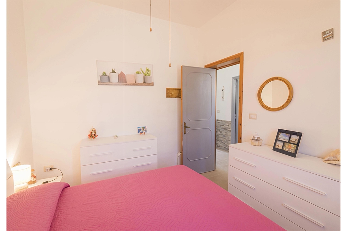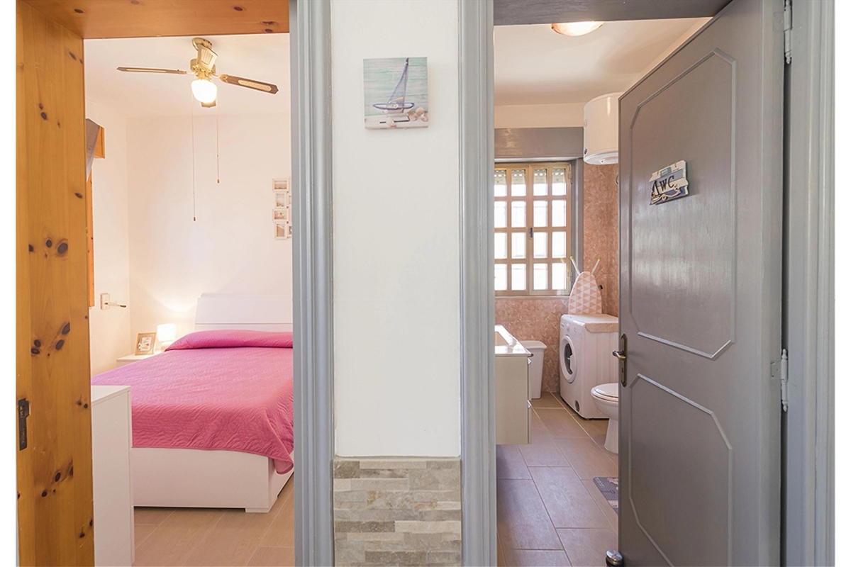 This newly renovated villa is a spacious retreat with a large outdoor space allowing for parking up to three cars. A spacious veranda has a large table, chairs, and two deckchairs, perfect for al fresco dining or relaxing. Additionally, there is an outdoor wooden shower cubicle for convenient post-beach rinses. The bright living room features two sofas, a dining area, and a smart TV. The fully-kitchen features a large fridge, a dishwasher, a cooker hob, an electric oven, a microwave, a dishwasher and two coffee makers. The two double bedrooms feature comfortable beds and wardrobes. The shared bathroom is equipped with a washing machine for additional convenience.